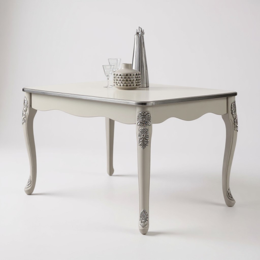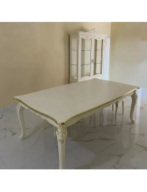 Tavolo barocco allungabile bianco anticato filo oro/argento 160x90x82