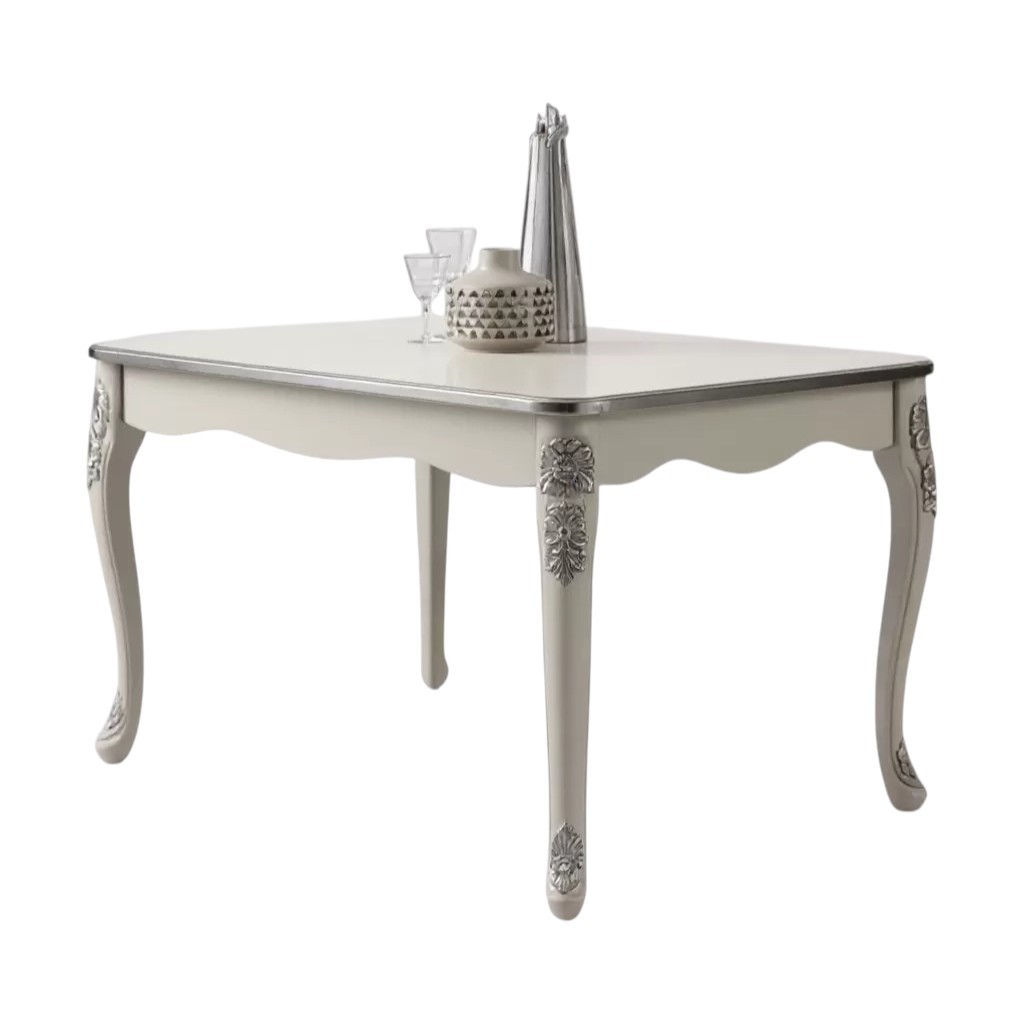• Tavolo barocco allungabile bianco anticato filo oro/argento 160x90x82  vista frontale