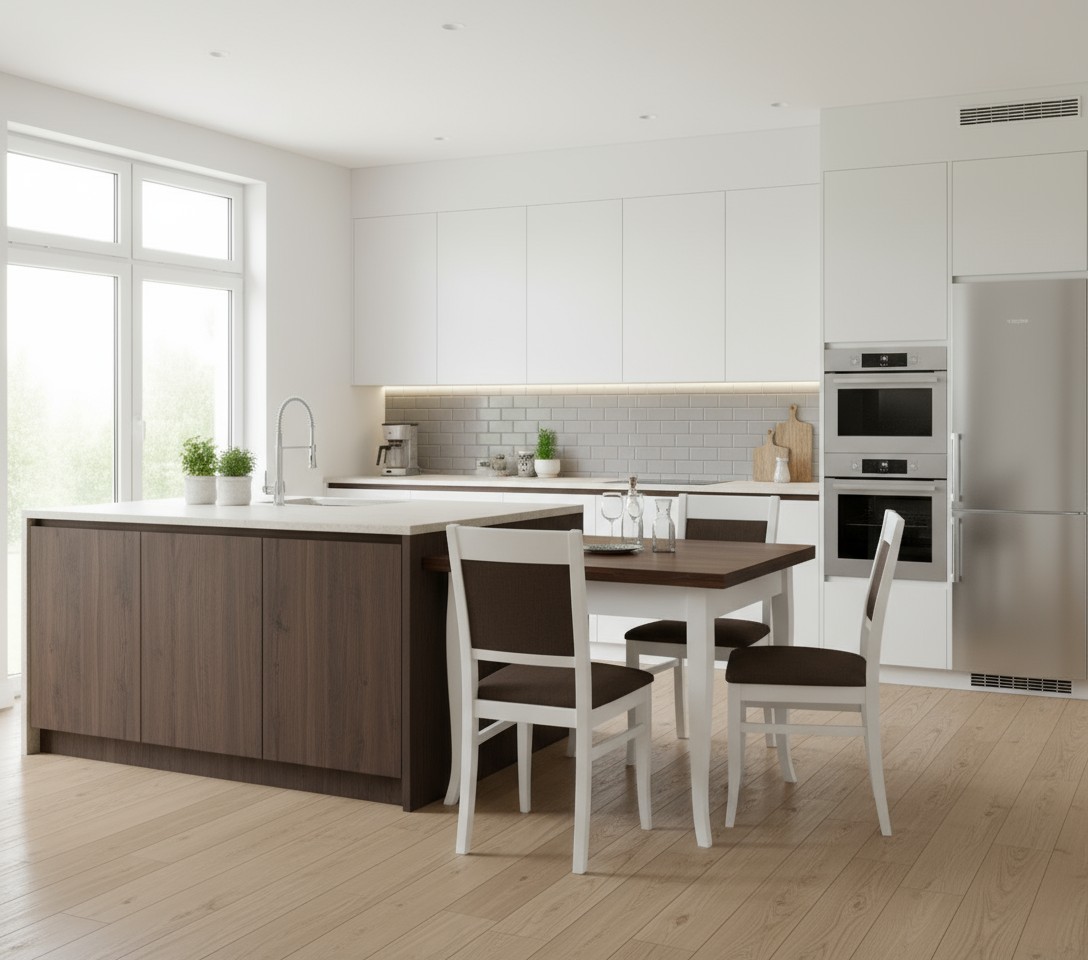 Tavolo costruito in legno massello di pioppo rendendo il mobile solido e allo stesso tempo elegante. Piano quadrato con gambe a sciabola. Dotato di un'apertura a libro con scorrimento per ospitare occasionalmente numerose persone per il pranzo o per la cena. Ideale per il soggiorno o in cucina.