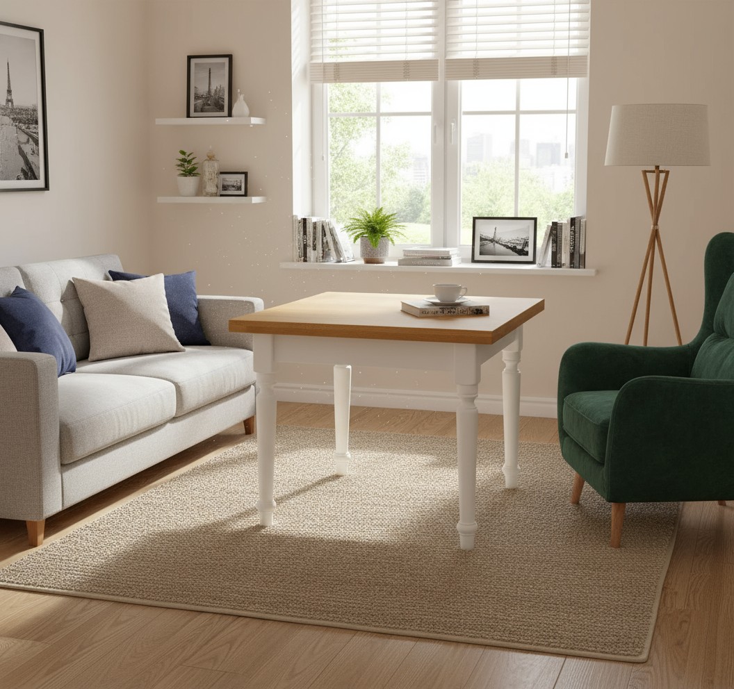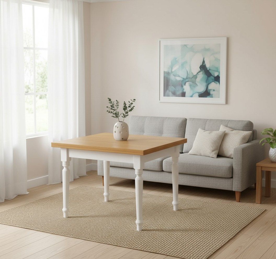 • Tavolo quadrato allungabile tornito shabby legno bicolore 80x80 90x90 100x100