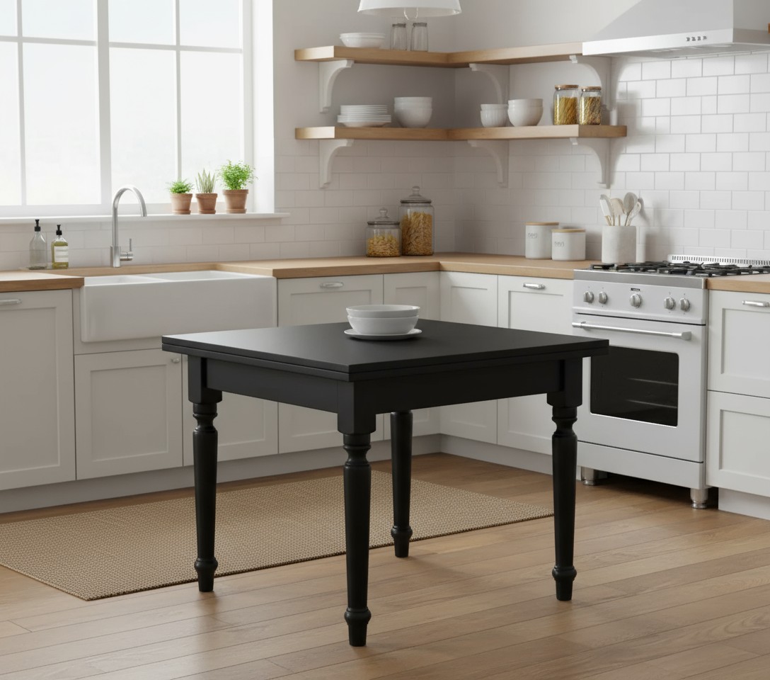 Tavolo quadrato allungabile tornito shabby legno bicolore 80x80 90x90 100x100