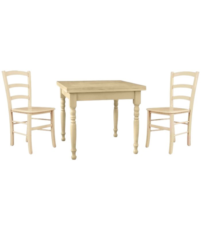 Set tavolo quadrato avorio anticato 80x80 90x90 100x100 allungabile con 3 sedie seduta legno