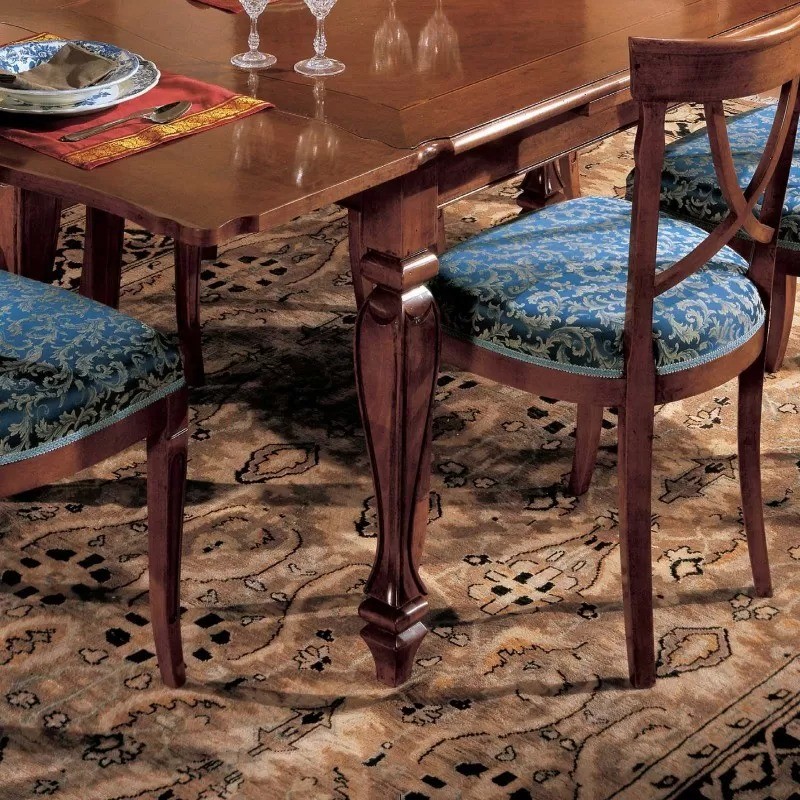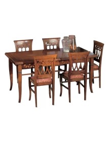 Set tavolo classico legno intarsiato bassano 160x100x80 con 6 sedie imbottite
