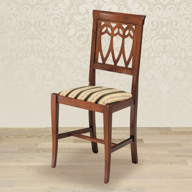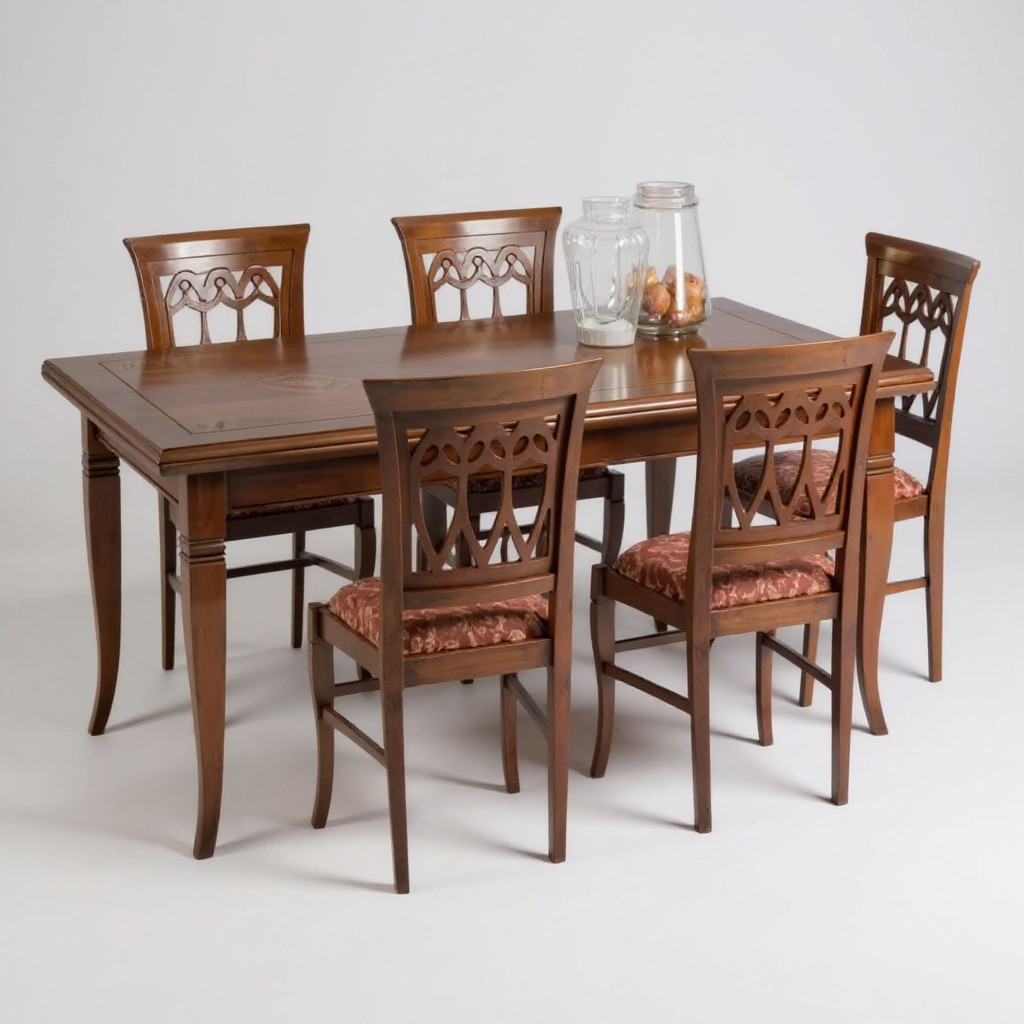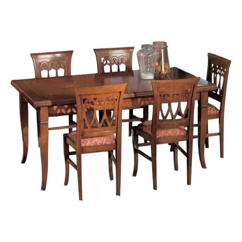 Set tavolo classico legno intarsiato bassano 180x90x78 con 6 sedie seduta imbottita