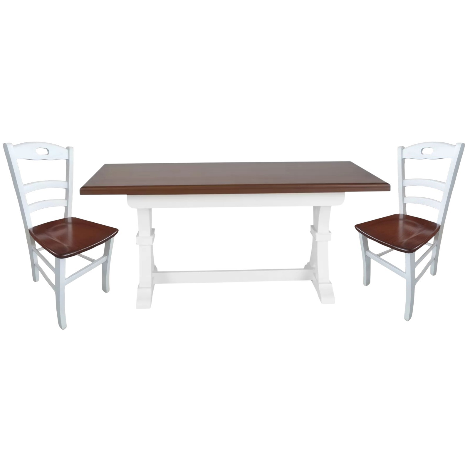 Set tavolo fratino allungabile legno shabby bianco e noce 160x85 180x85 180x100 con 6 sedie