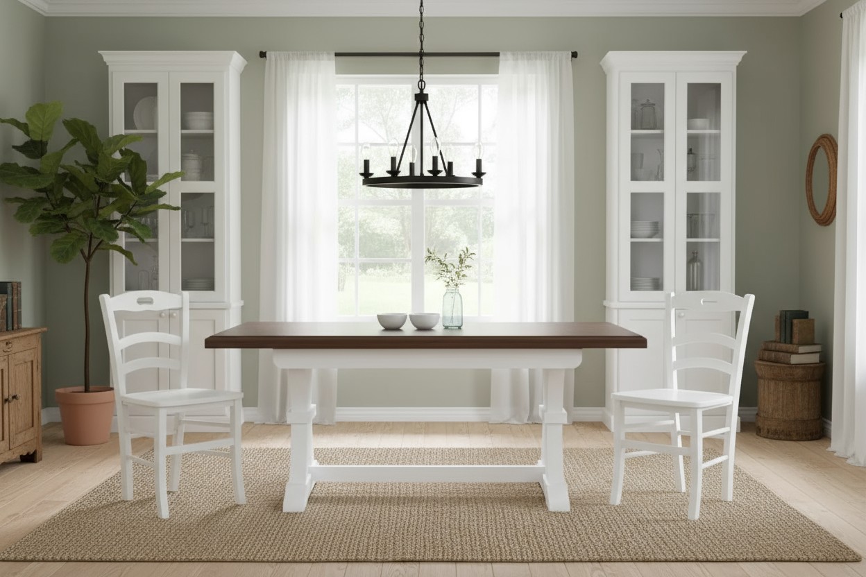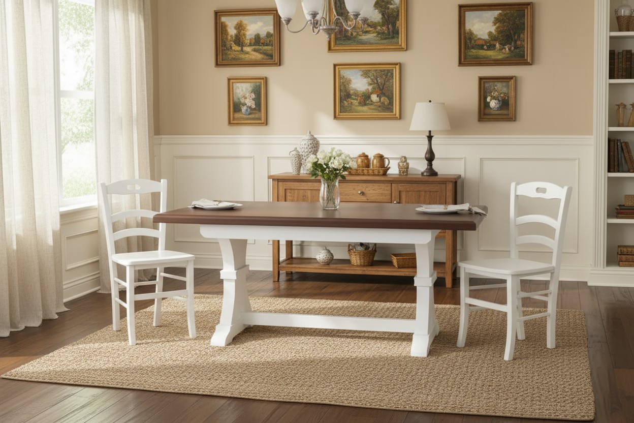 • Set tavolo fratino allungabile legno shabby bianco e noce 160x85 180x85 180x100 con 6 sedie