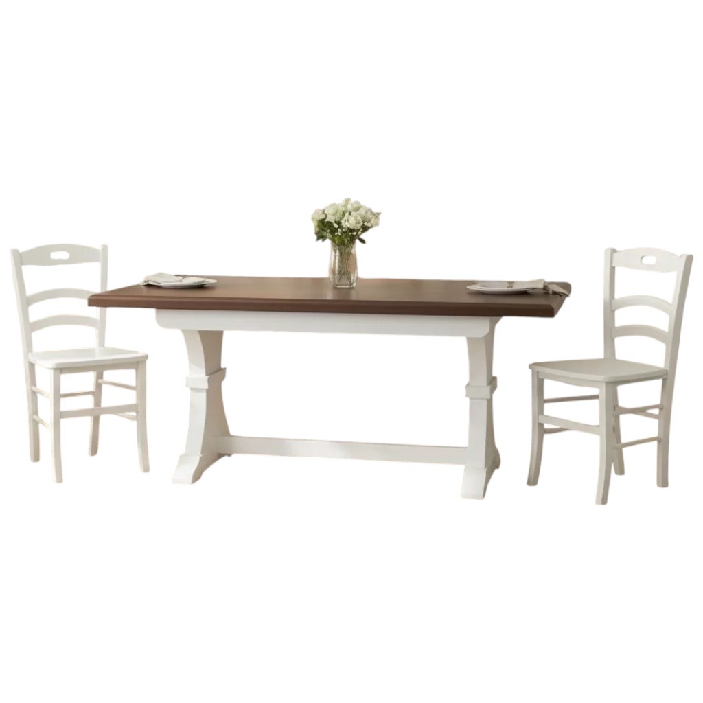 Set tavolo fratino allungabile legno shabby bianco e noce 160x85 180x85 180x100 con 6 sedie