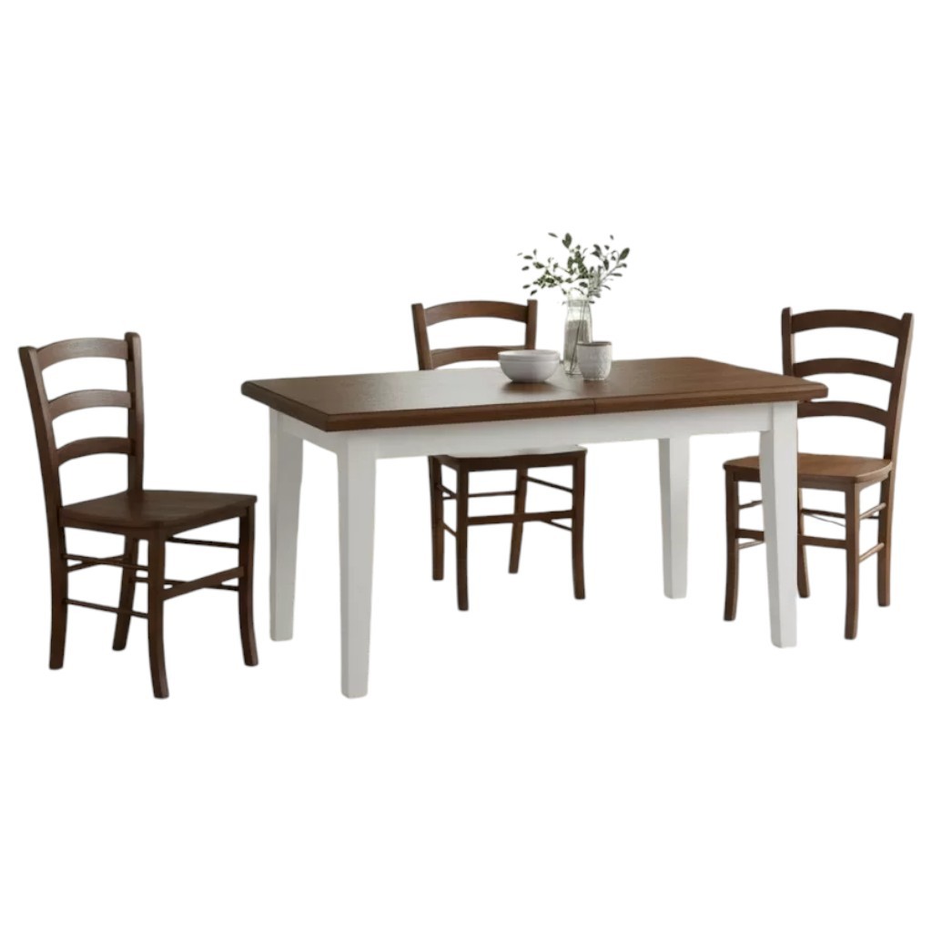 Set tavolo allungabile legno shabby bianco e noce 160x85 180x85 180x100 con 6 sedie