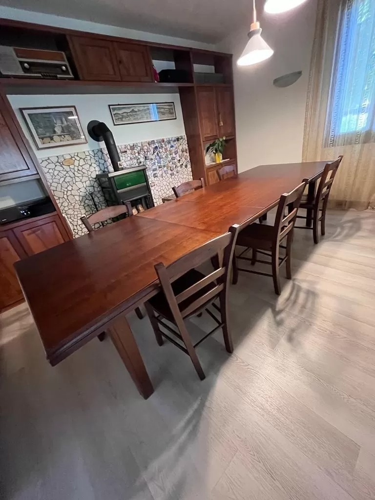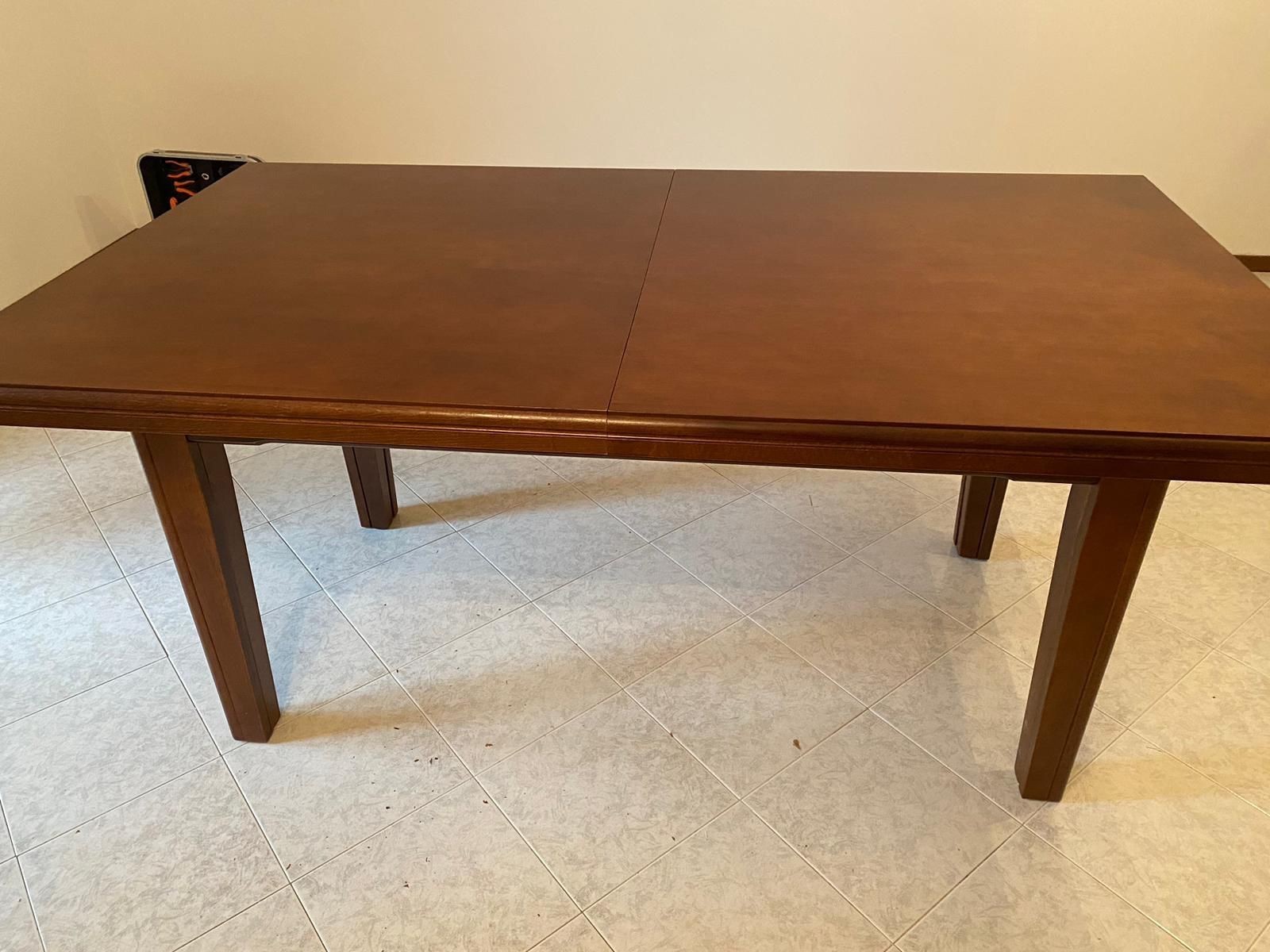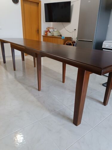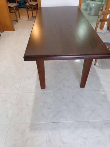 Tavolo costruito in legno massello di pioppo rendendo il mobile solido e robusto. Piano rettangolare con 4 gambe sdoppiabili per l' allungamento, dotato di 4 allunghe da 45 cm con apertura centrale. Le allunghe sono riposte sotto il piano pronte all' occorrenza per ospitare numerose persone. Ideale per la zona giorno o per la zona della taverna ospitando amici per il pranzo o per la cena.