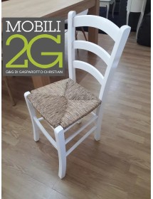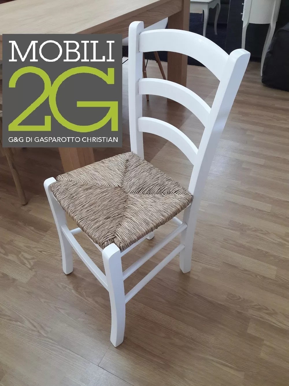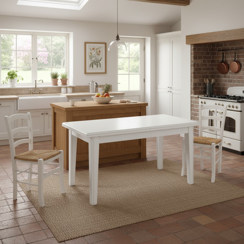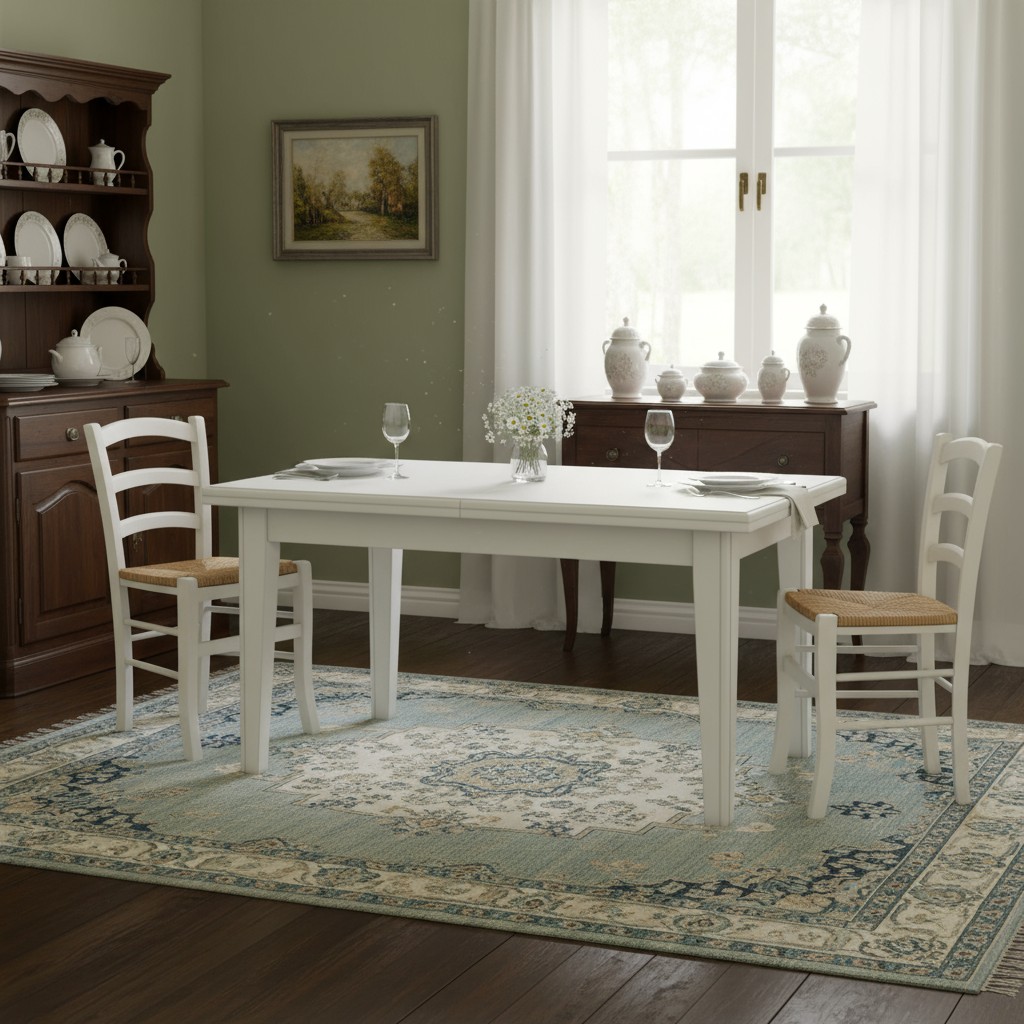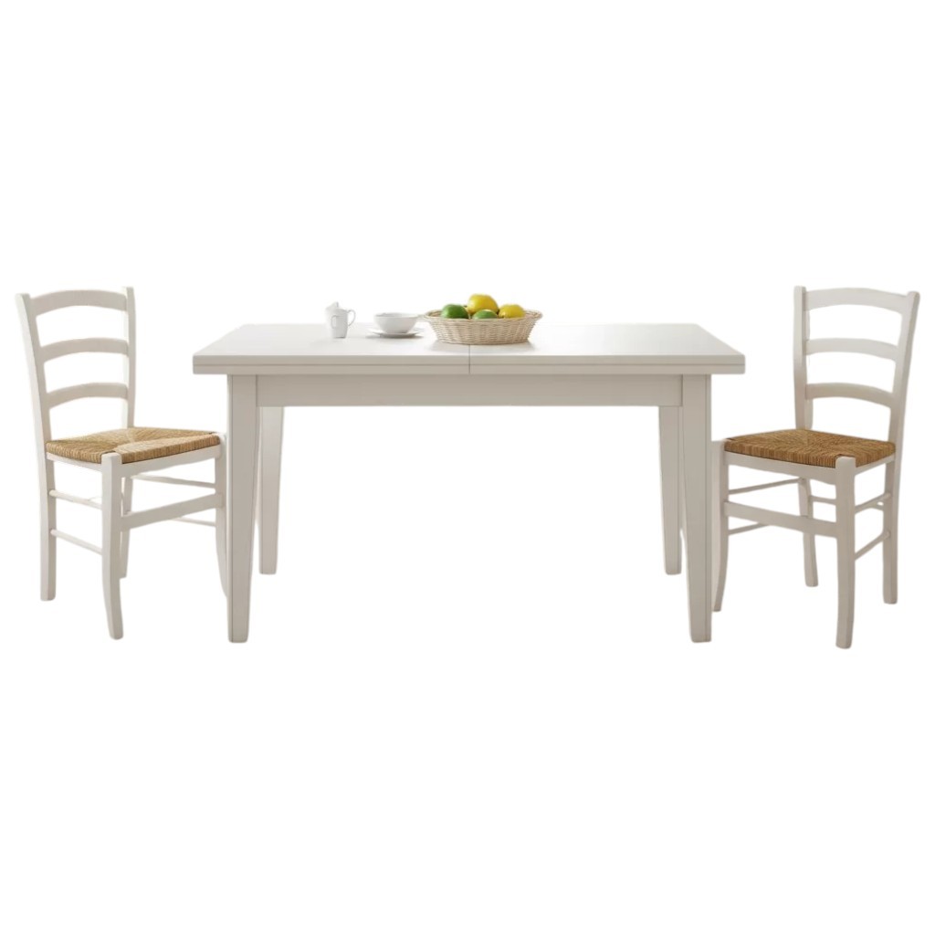 Set tavolo shabby bianco160X85 180x85 180x100 allungabile con 6 sedie legno seduta paglia