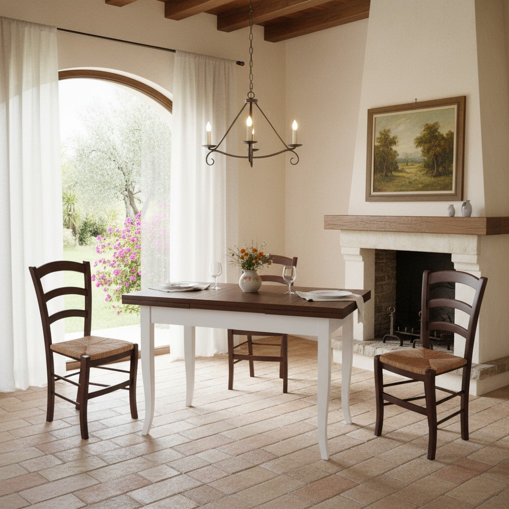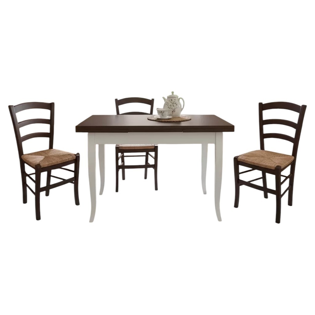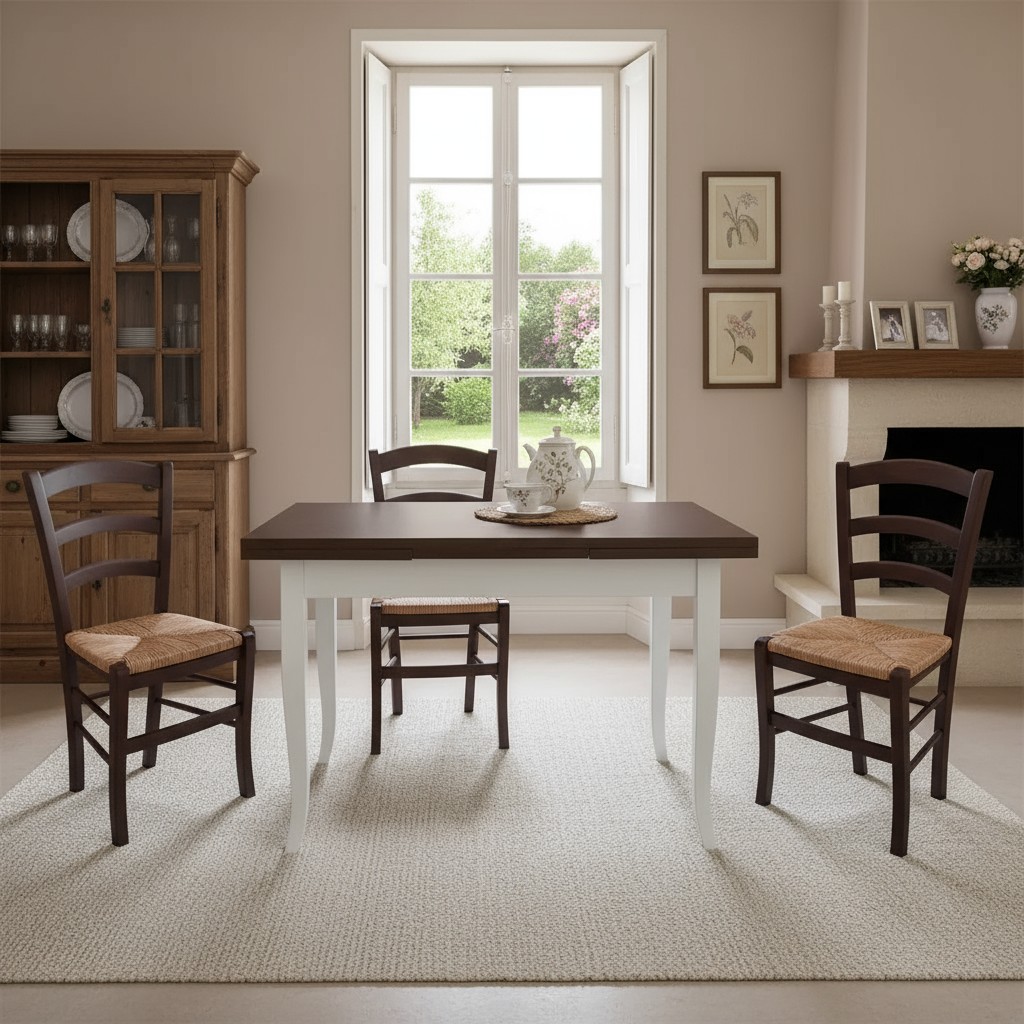 • Set tavolo rettangolare shabby bicolore 100x70 120x80 140x80 160x85 allungabile con 4/6 sedie seduta paglia