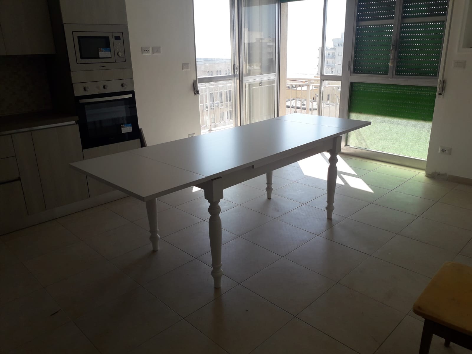 Tavolo costruito in legno massello di pioppo rendendo il mobile solido e robusto. Piano rettangolare con gambe tornite, dotato di due allunghe laterali da 40 cm allungabile con apertura laterale da entrambe i lati, detta anche ' apertura a tiro '. Le allunghe sono riposte sotto il piano pronte all' occorrenza per ospitare numerose persone. Ideale per la zona giorno accompagnato da comode sedie ospitando amici per il pranzo o per la cena.