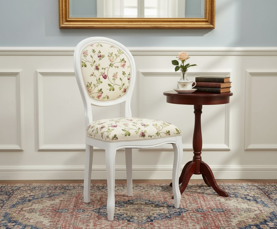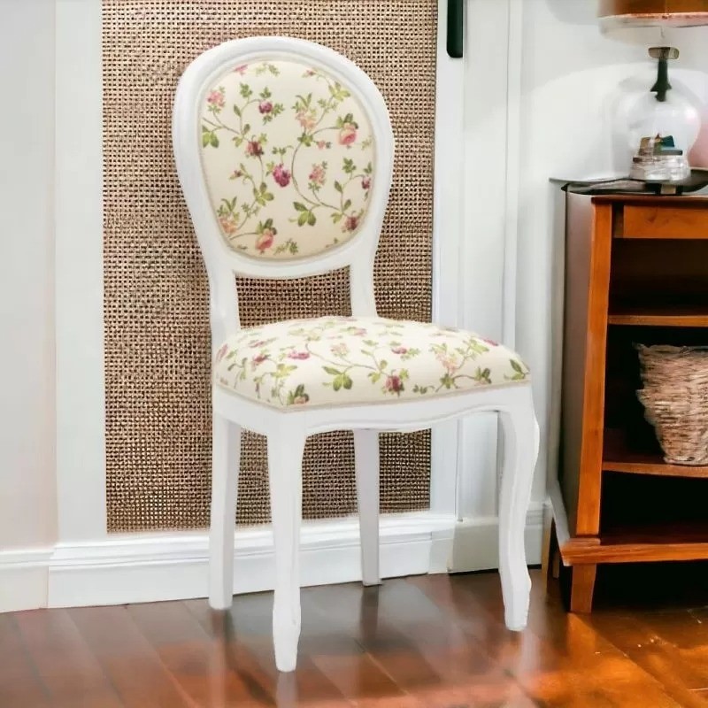 Set tavolo bianco gamba tornita 100x70 120x80 140x80 160x85 allungabile con 4/6 sedie floreale