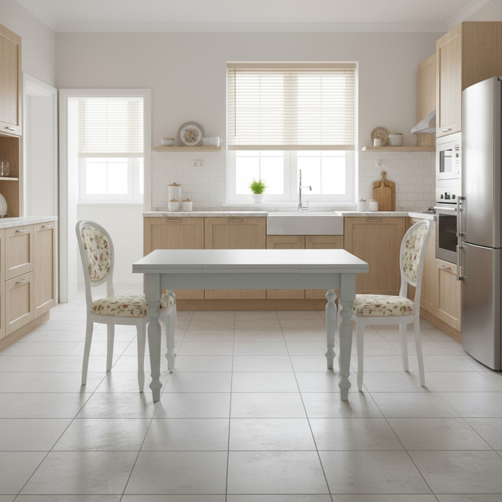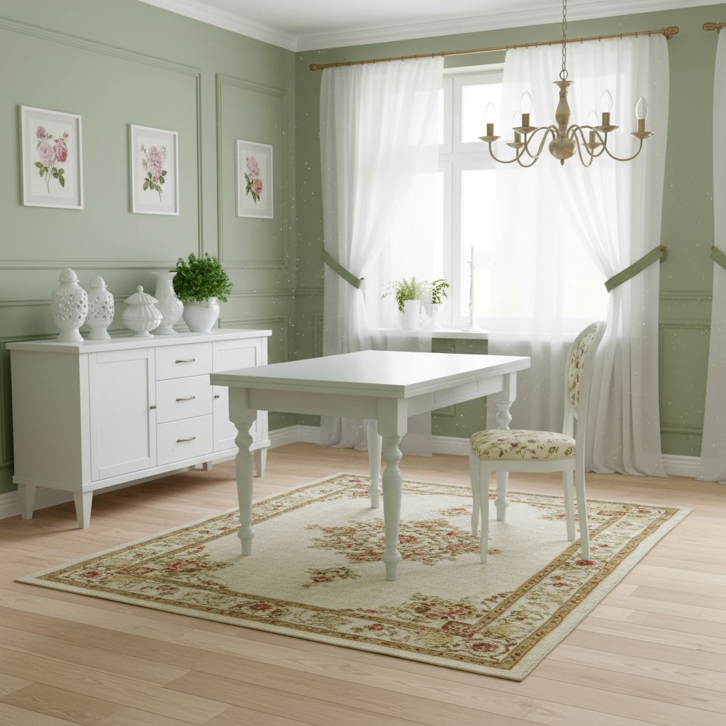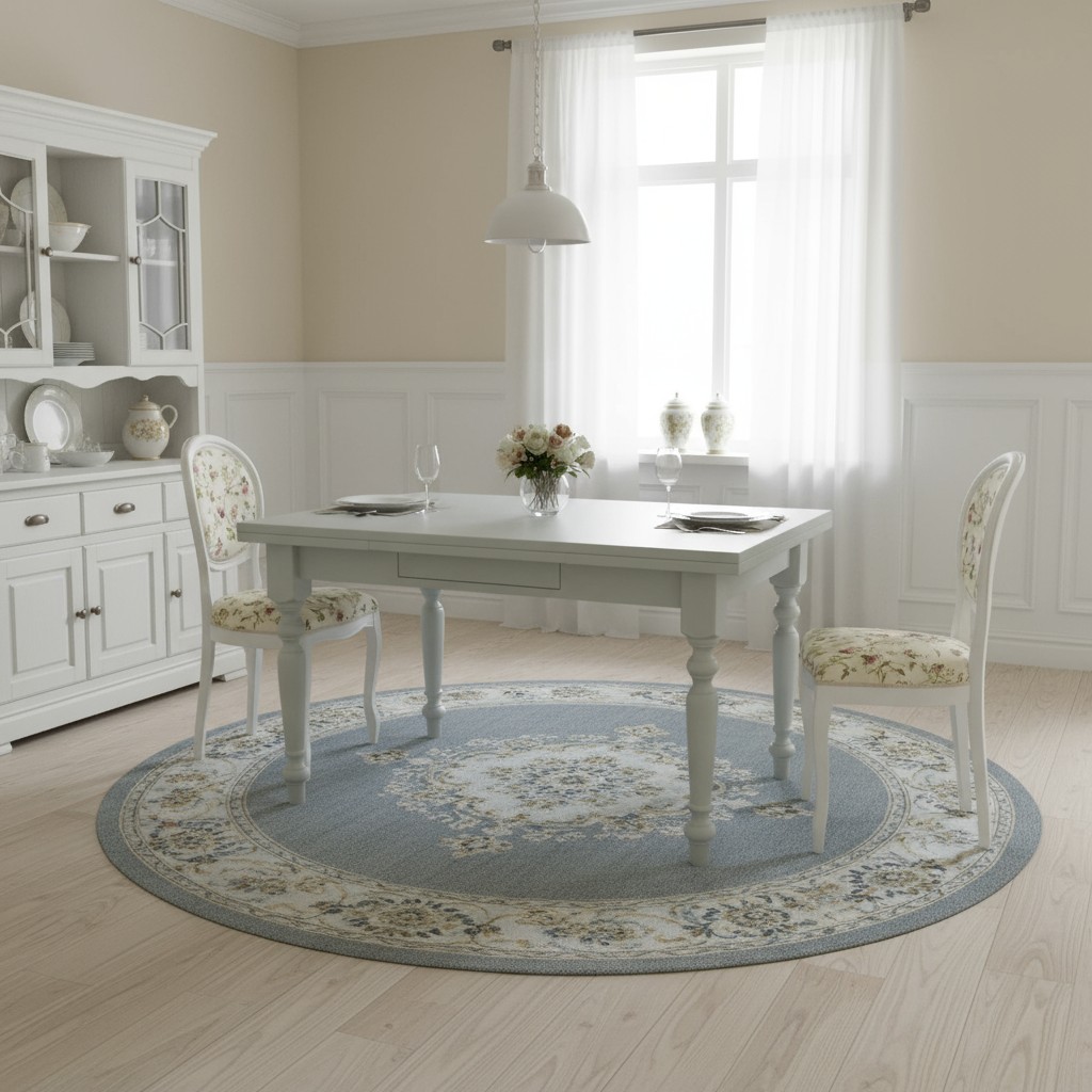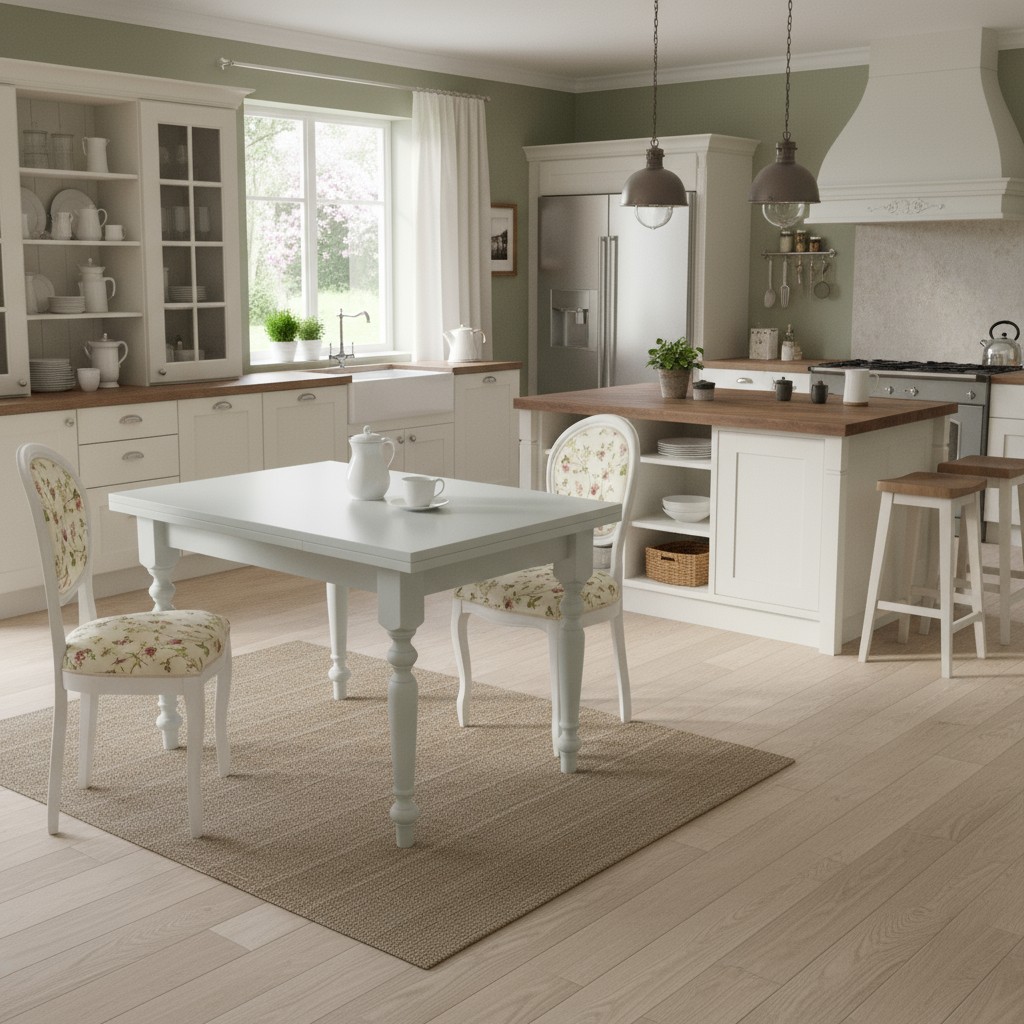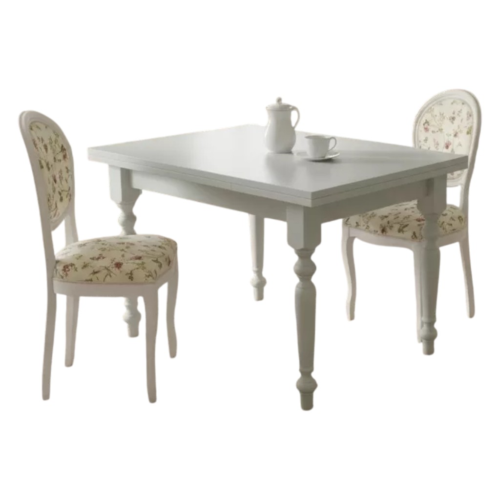 • Set tavolo bianco gamba tornita 100x70 120x80 140x80 160x85 allungabile con 4/6 sedie floreale