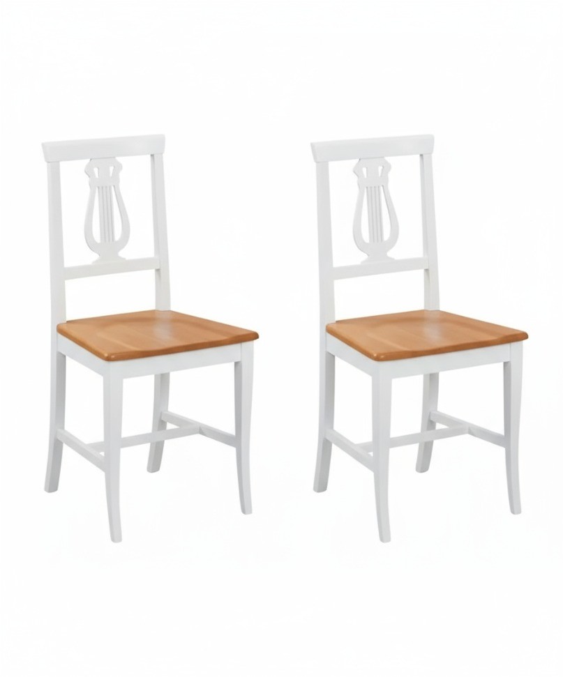 Set 2 sedie a lira legno shabby bicolore con seduta legno
