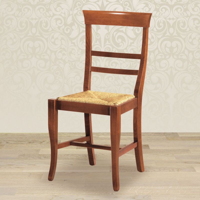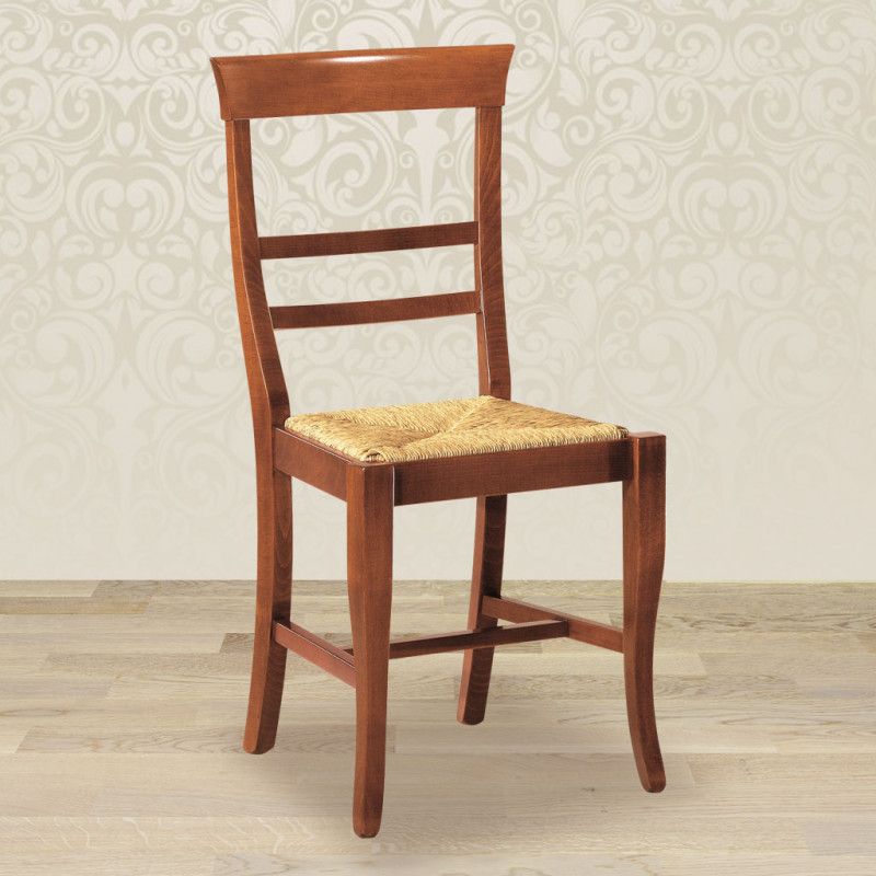 SEDIA LEGNO CLASSICA SAGOMATA SEDUTA PAGLIA VARI COLORI 46X45X92