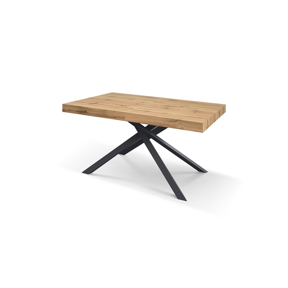 Tavolo moderno allungabile caratterizzato da un piano rettangolare originale è innovativo. Si distingue per la sua struttura solida composta da piedi in ferro incrociati raggiungendo una lunghezza in massima estensione grazie ad un meccanismo centrale di scorrimento su guide in metallo zincato. Ideale per un soggiorno moderno che risalta tutti i dettagli assieme a uno stile esclusivo.