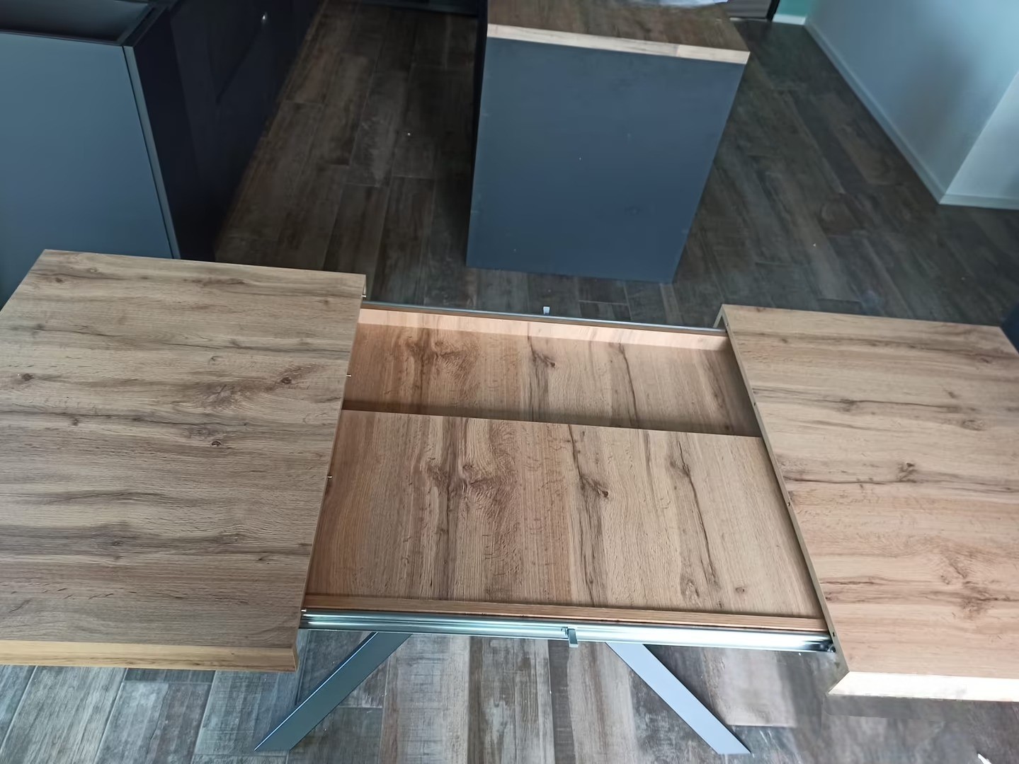 Tavolo moderno allungabile rovere rustico gambe nere 140x90x74 160x90x74