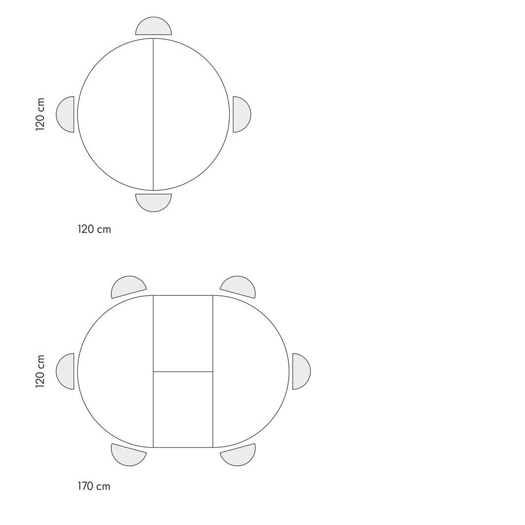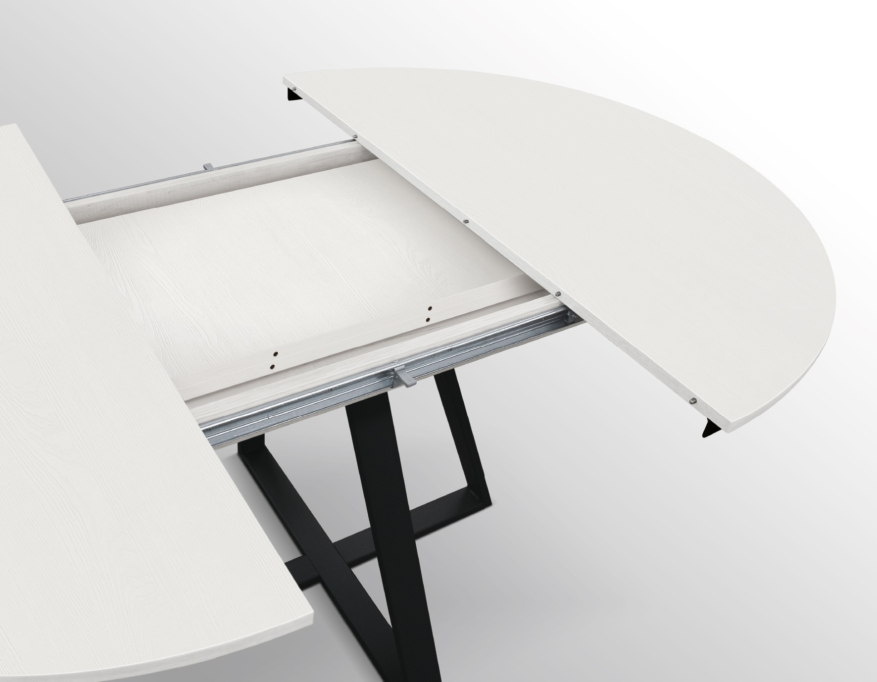 Mobili 2G - Tavolo rotondo moderno allungabile piano bianco frassino gambe nere 120x120x75,3 (2182)