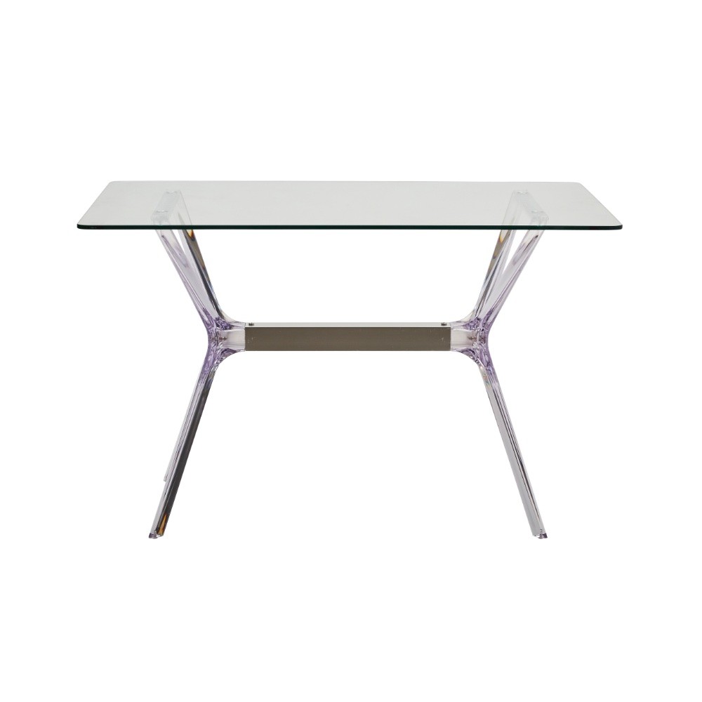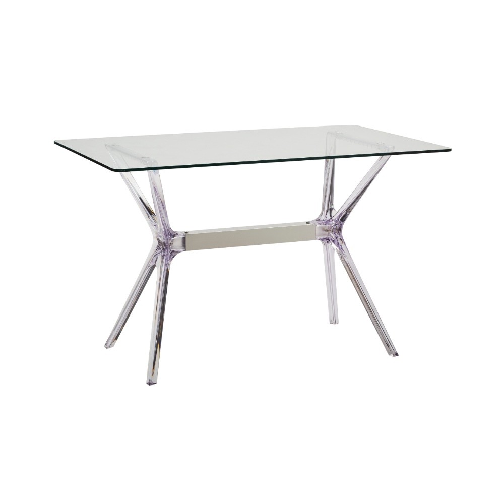 TAVOLO RETTANGOLARE POLIPROPILENE TRASPARENTE E VETRO TRASPARENTE 140X80x76 (747)