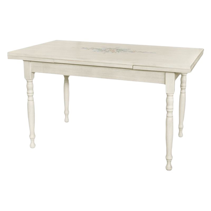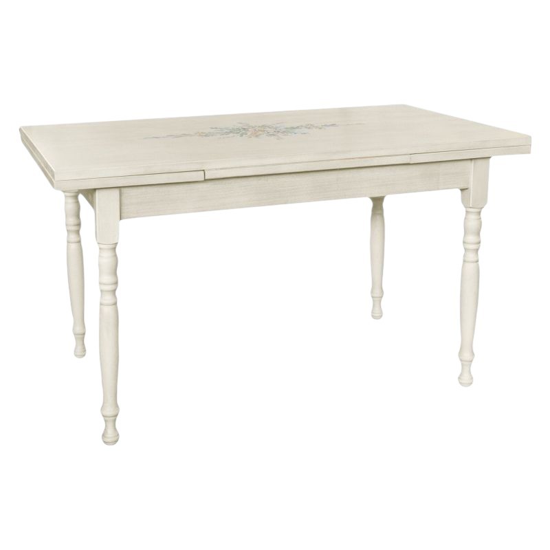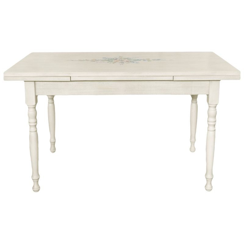 Tavolo Allungabile Legno Bianco anticato decorato gamba tornita 100x70 120x80 140x80 160x85
