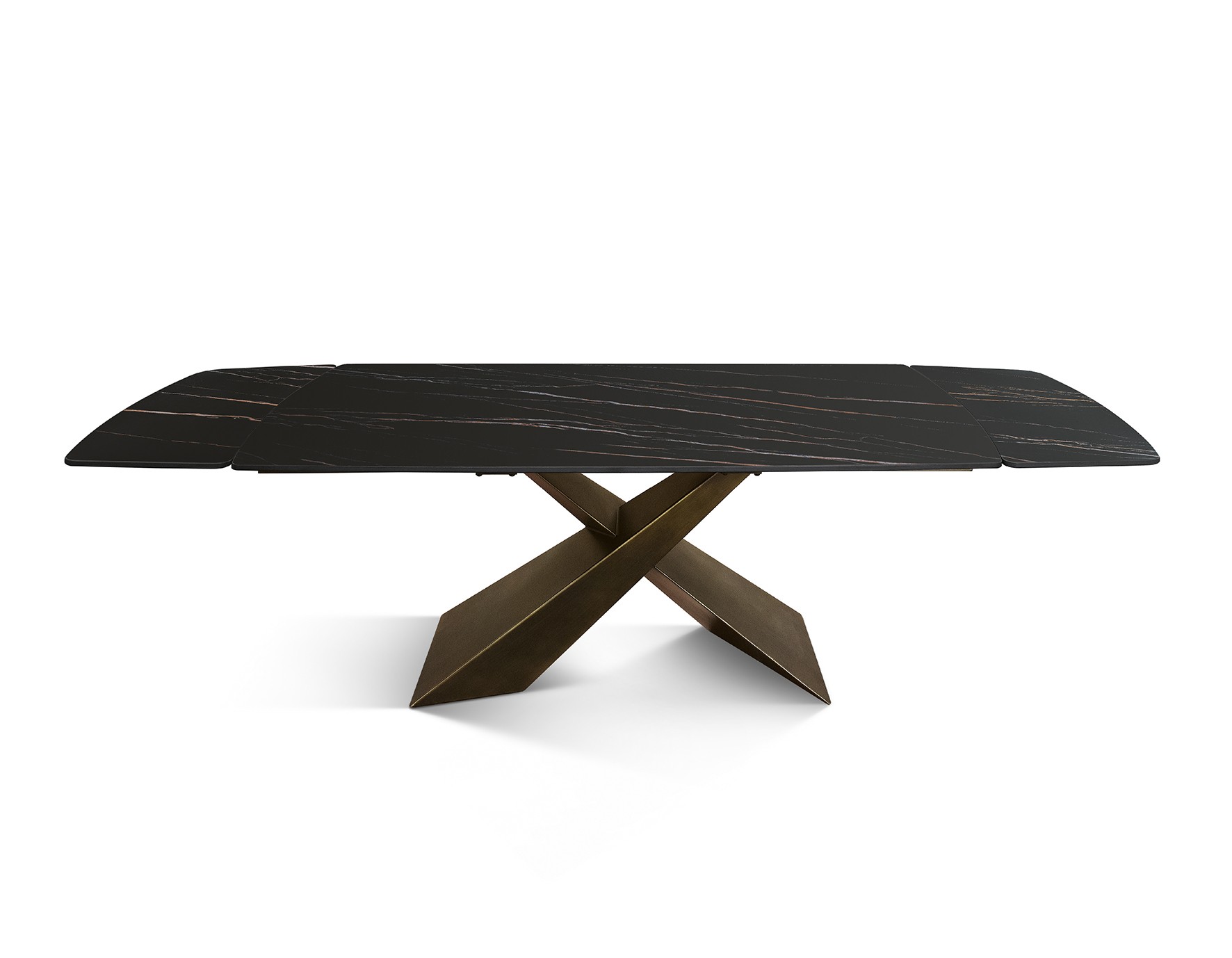 Tavolo moderno allungabile nero effetto marmo gambe bronzo 160x90x76 180x90x76