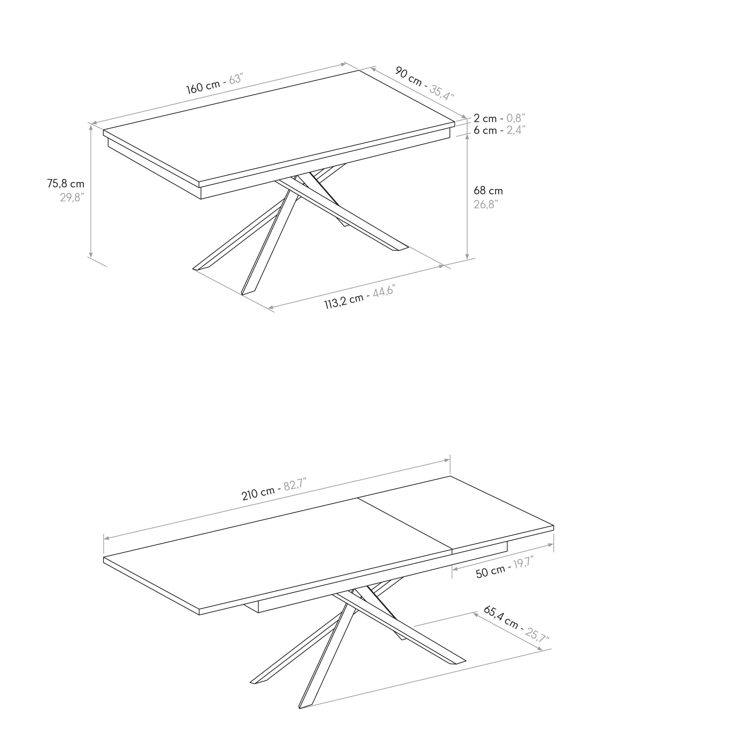 Dimensioni da aperto: 220x90x76 cm ( con 1 allunga)