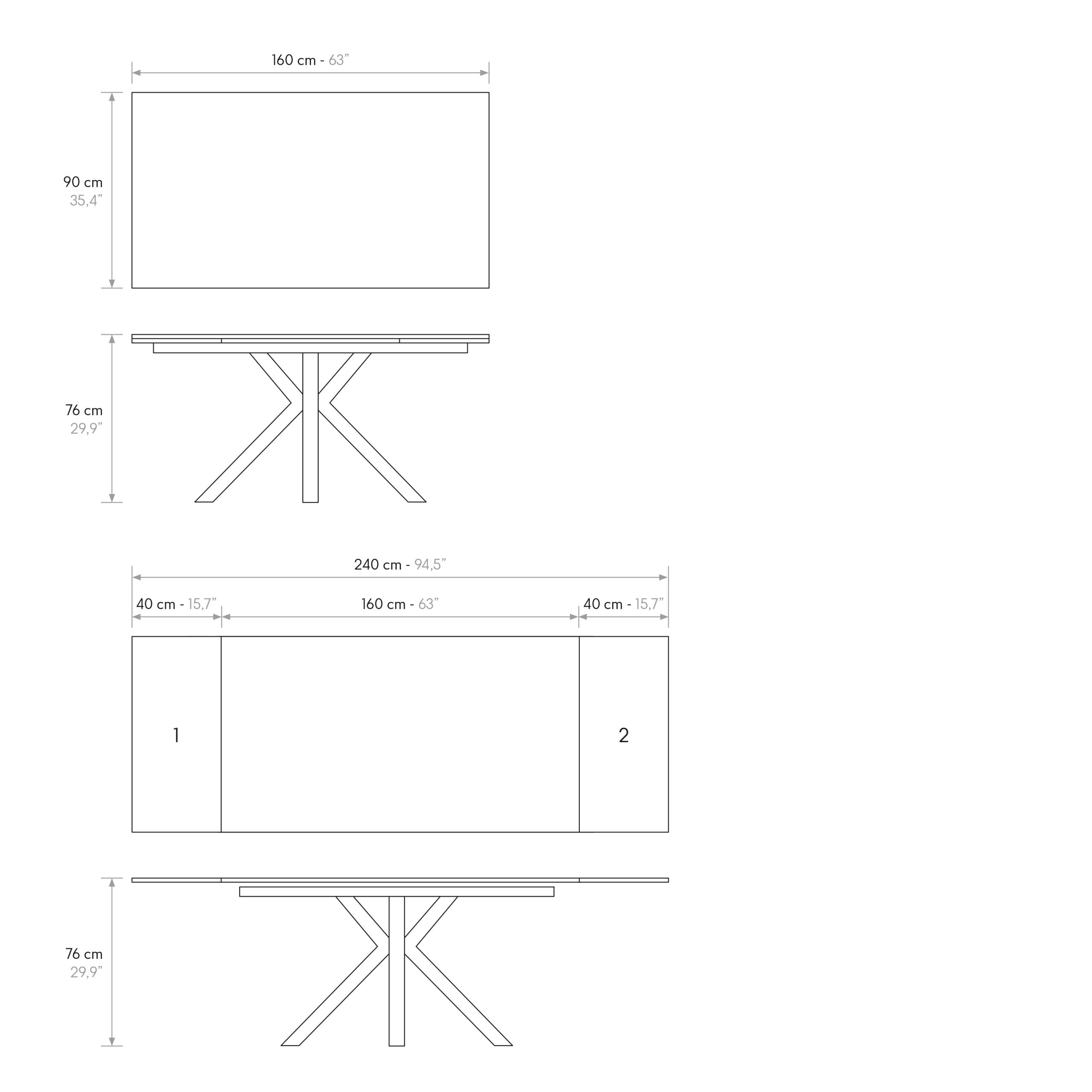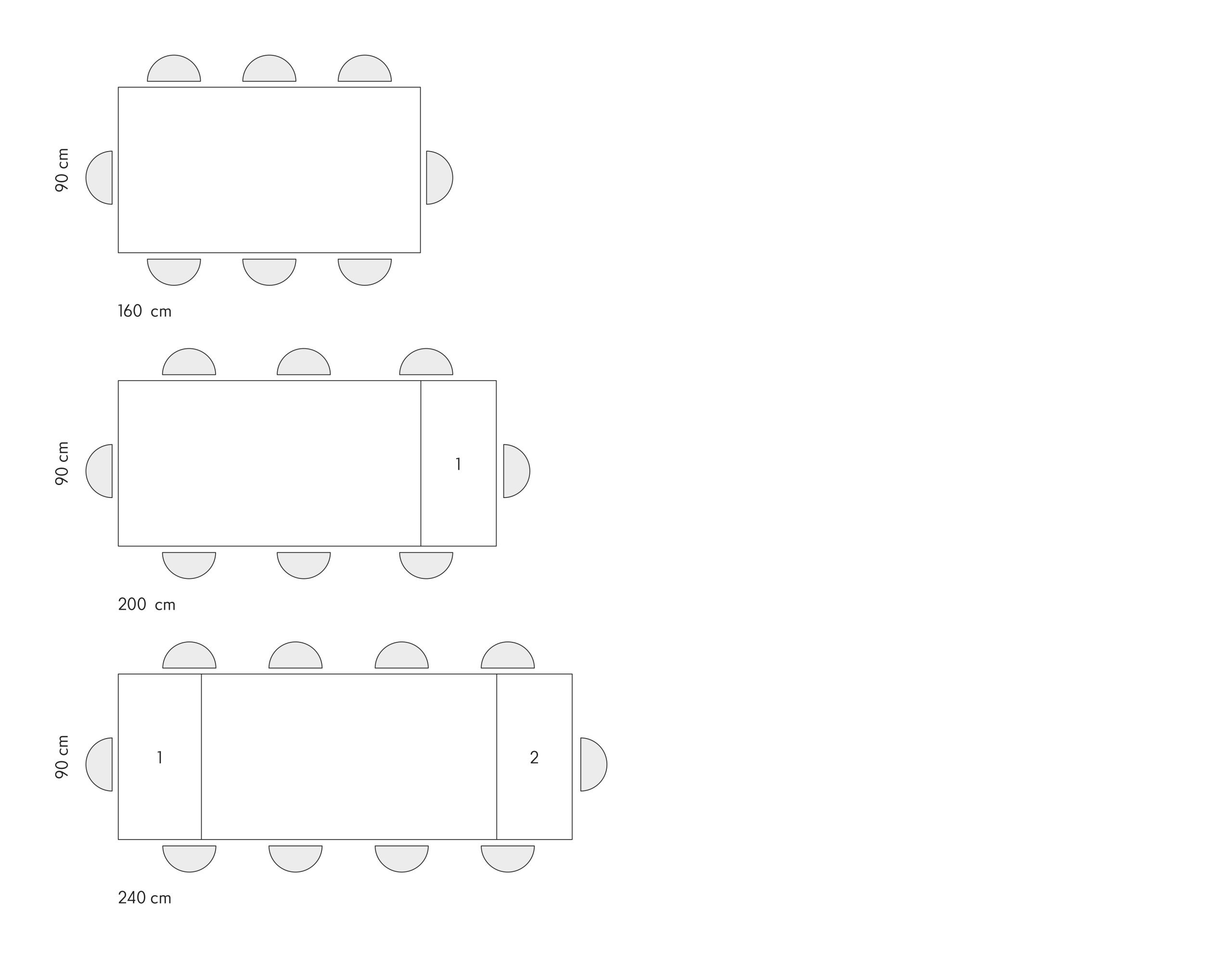 Dimensioni da aperto: 240x90x76 cm ( con 2 allunghe)