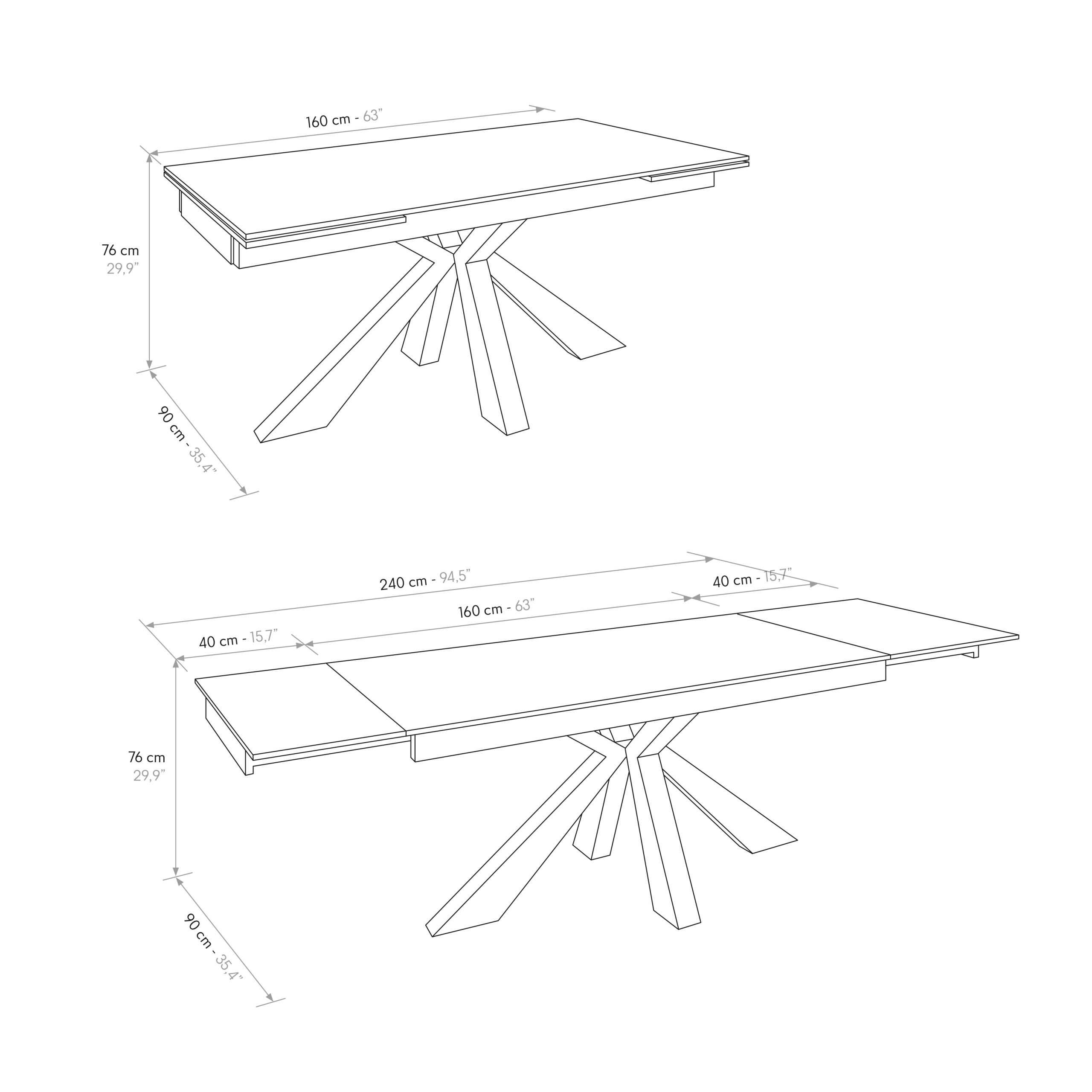 Tavolo moderno allungabile grigio cemento gambe nere 160x90x76 180x90x76499,00 € 907,27 € -45%