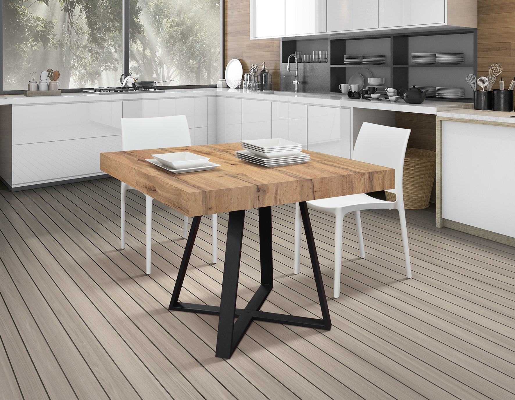 Tavolo quadrato moderno allungabile a libro olmo perla 90x90x77195,00 € 354,54 € -45% -