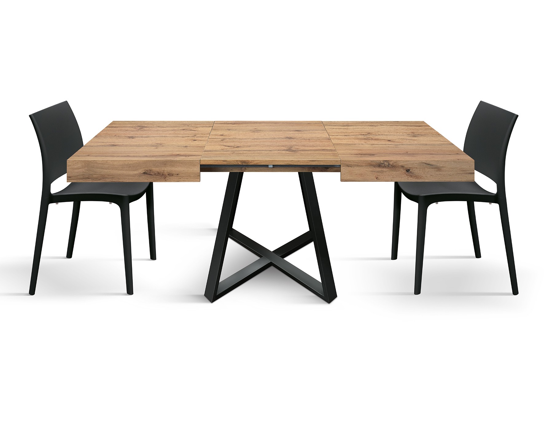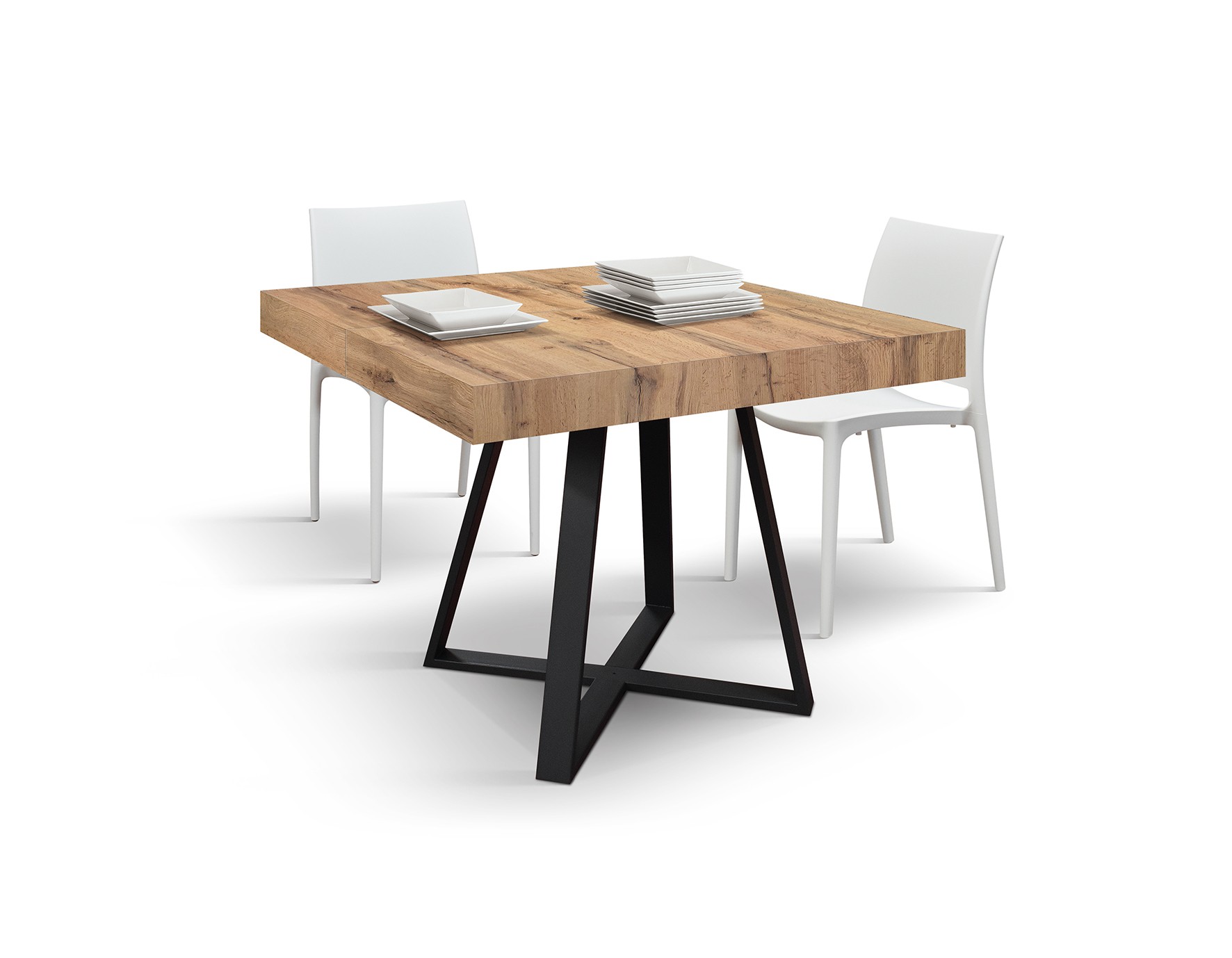 Tavolo rettangolare moderno allungabile piano rovere rustico gambe nere 95x90x75,5