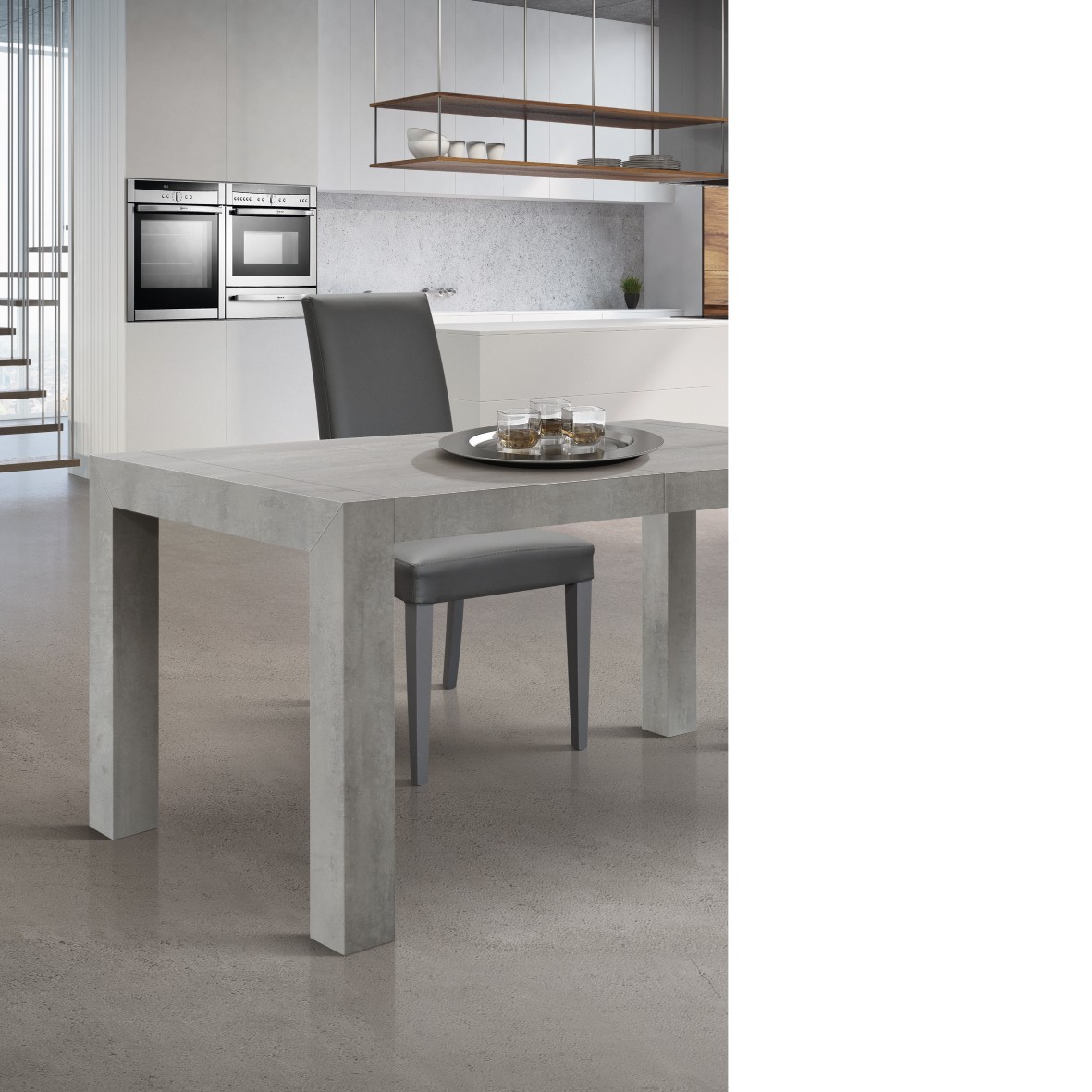 Tavolo rettangolare moderno allungabile piano grigio cemento gambe nere 95x90x75,5379,00 € 689,09 € -45% -