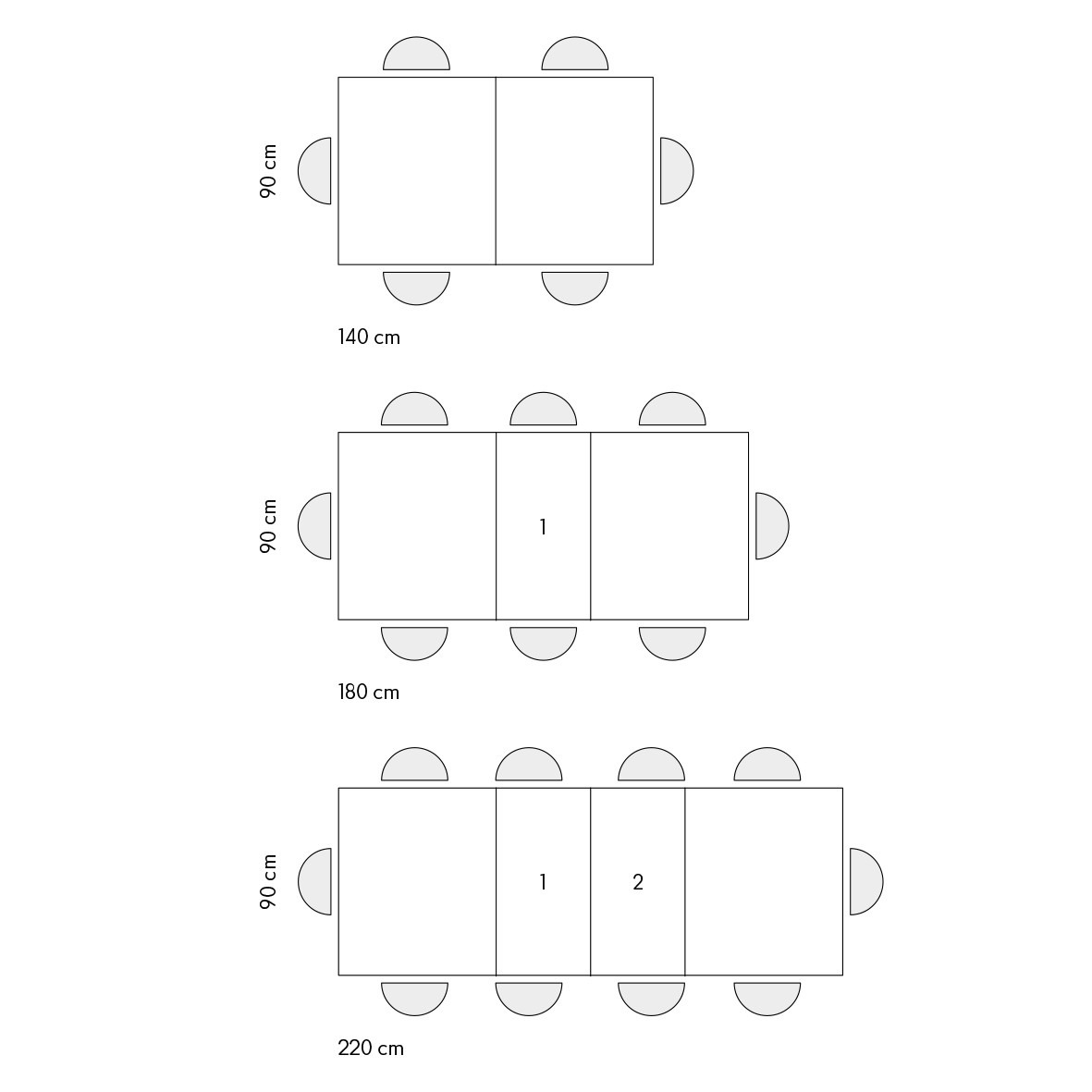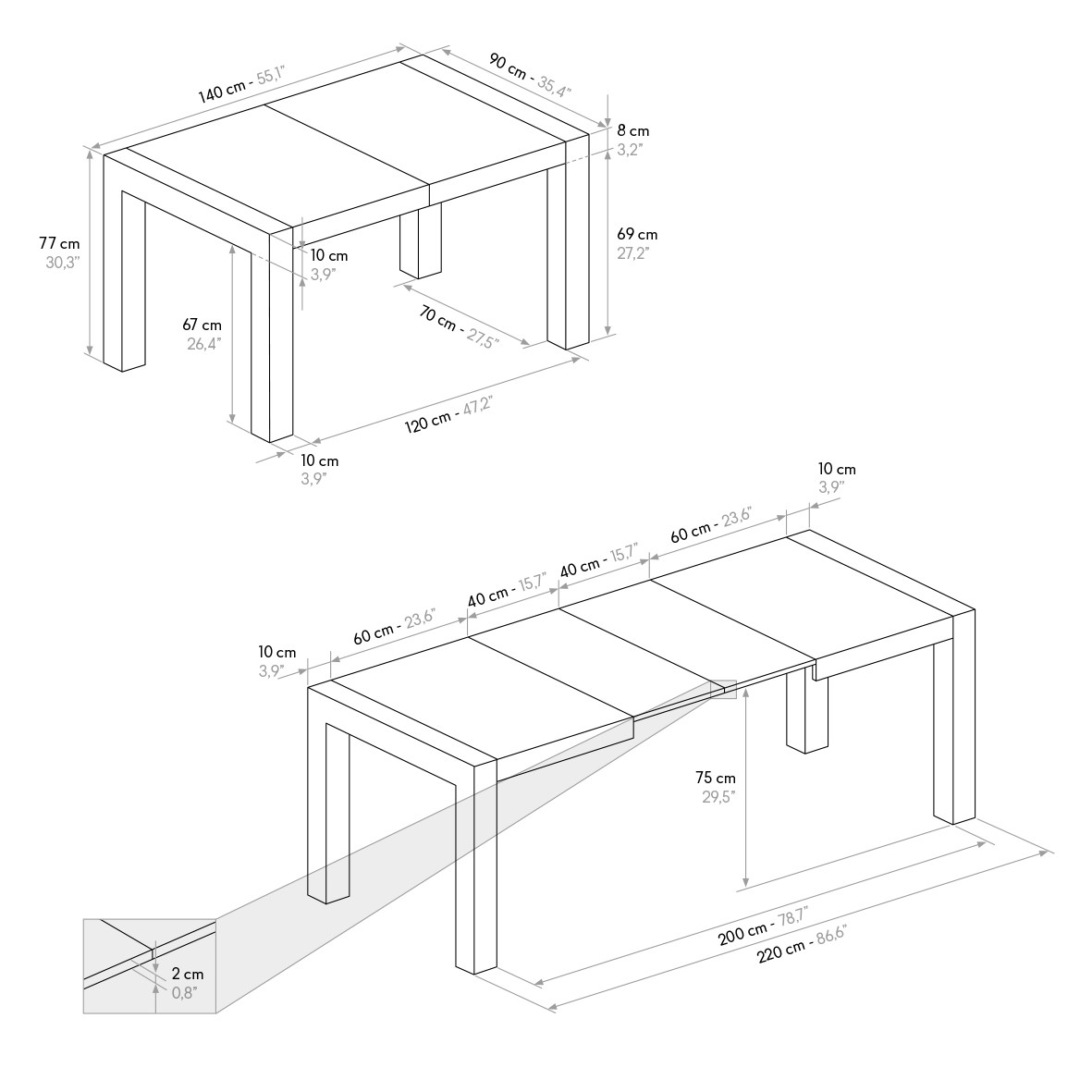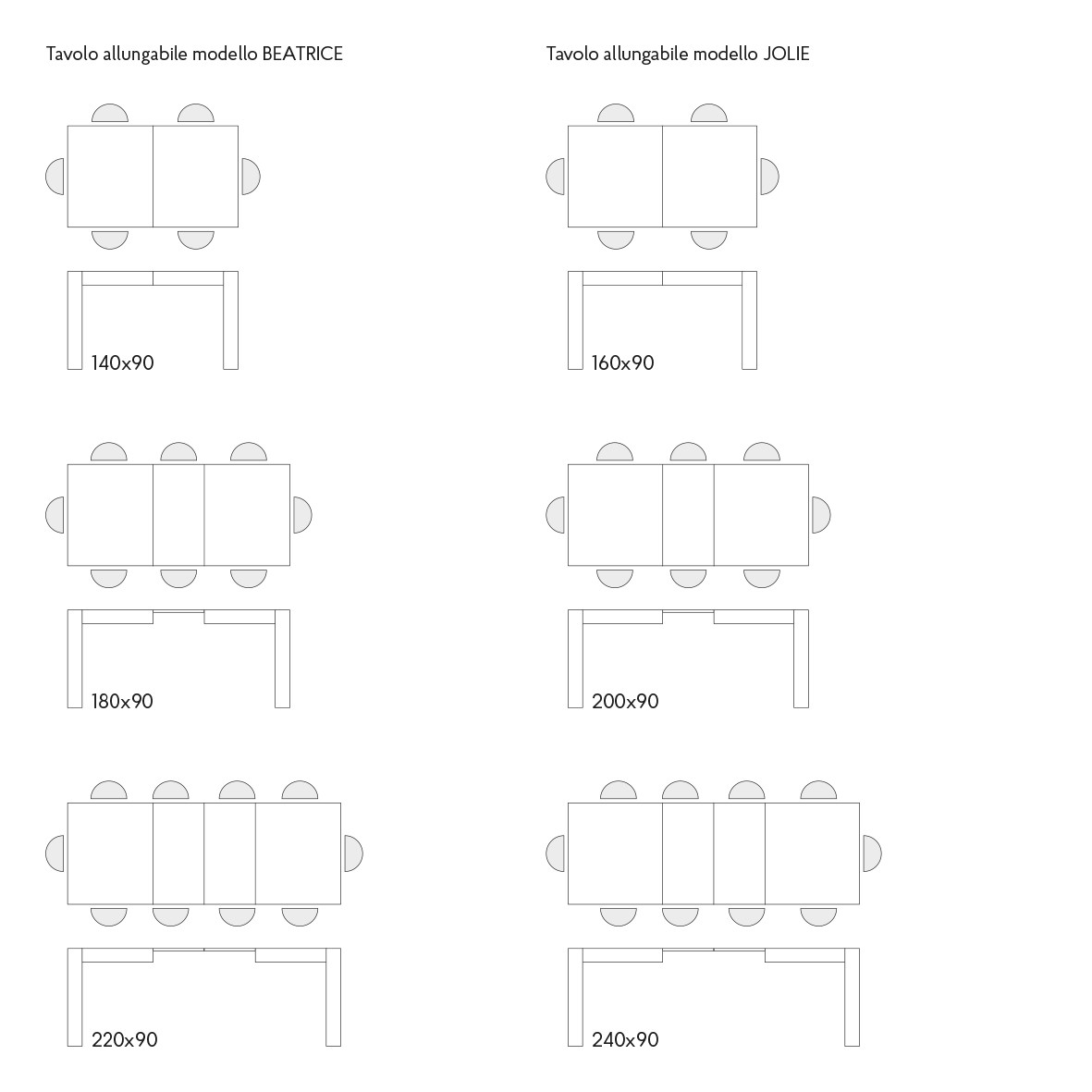 Dimensioni da aperto: 240x90x77 cm ( con 2 allunghe)