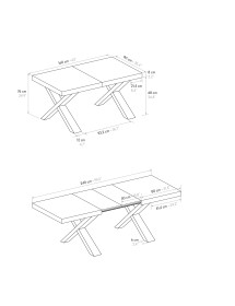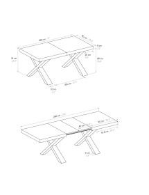 Tavolo allungabile con una linea giovane e dinamica dall' impatto visivo imponente e accattivante. Le gambe oblique e rastrellate alleggeriscono e allo stesso tempo sorreggono il piano composto da materiali solidi e duraturi, rendendolo funzionale e pratico all’occorrenza, si trasforma allungandosi in maniera pratica e veloce grazie alle due allunghe centrali.