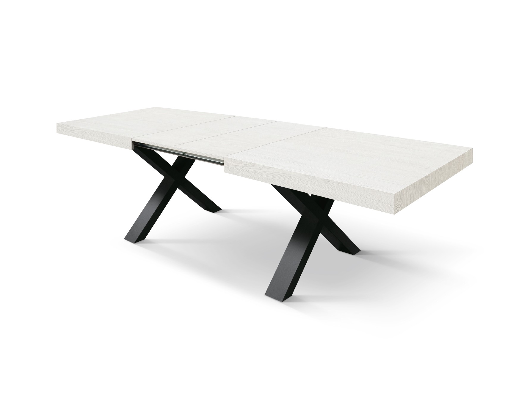 Tavolo moderno allungabile bianco frassino gambe nere 160x90x76 180x90x76