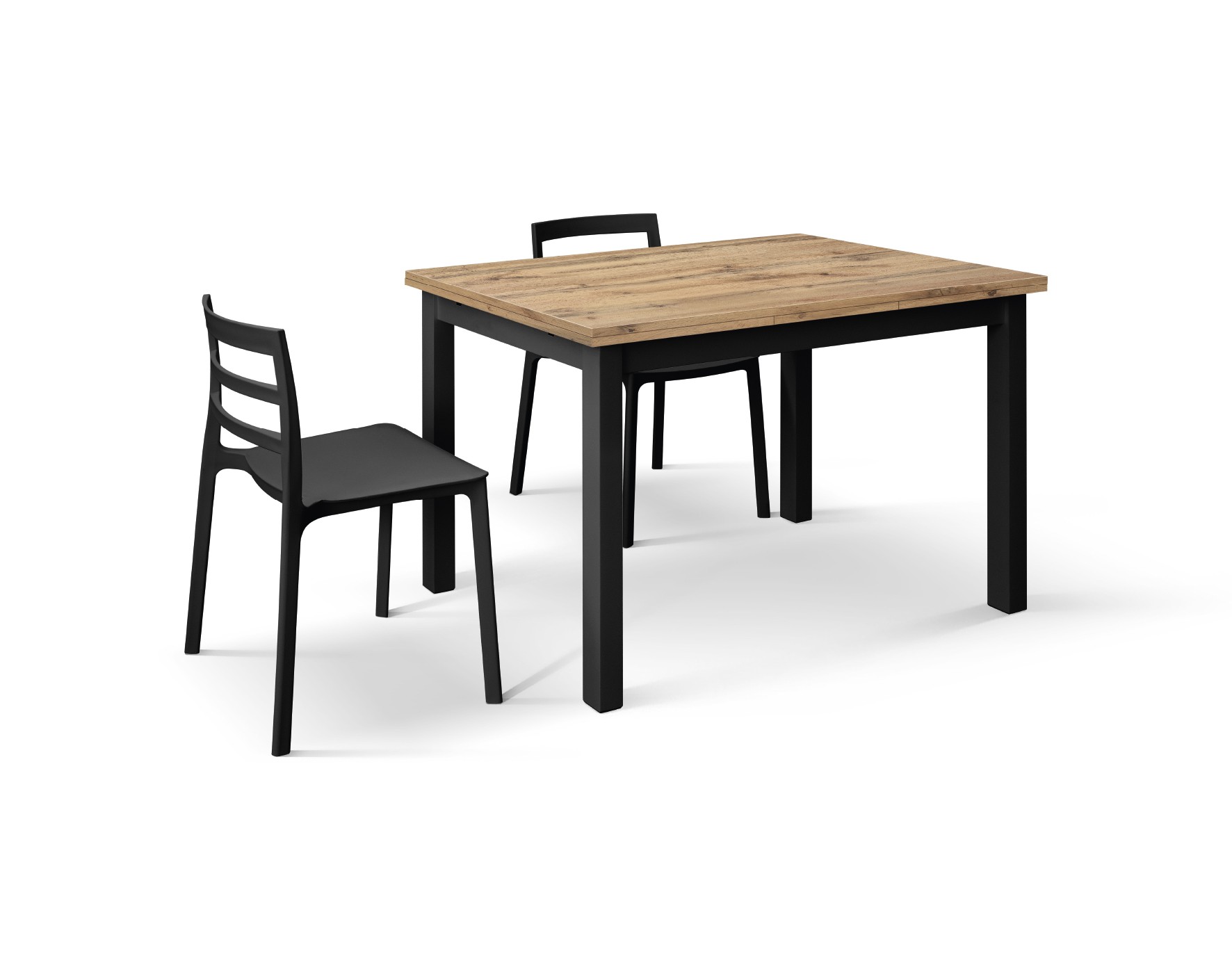 Tavolo rettangolare moderno allungabile rovere rustico gambe nere 110x70x76,5 140x80x76,5