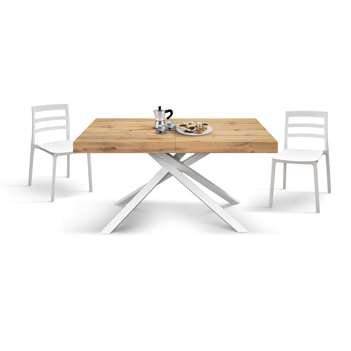 Tavolo moderno allungabile rovere rustico gambe bianche 140x90x74 160x90x74