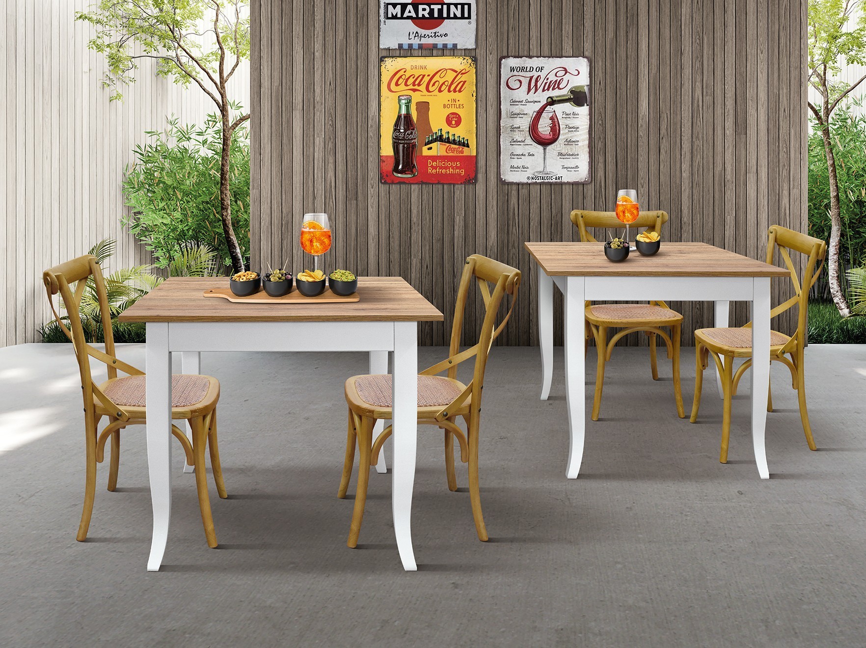 Tavolo fisso caratterizzato da un piano quadrato originale è innovativo. Si distingue per la sua struttura solida composta da quattro gambe a sciabola che si adatta a diversi stili, dallo shabby chic al rustico. Tavolo ideale per ristoranti , bar e agriturismi sfruttando le dimensioni ridotte ma pur offrendo comodità per 2 o 4 persone. Ideale per chi vuole dare un tocco di calore a un' ambiente dallo stile esclusivo.