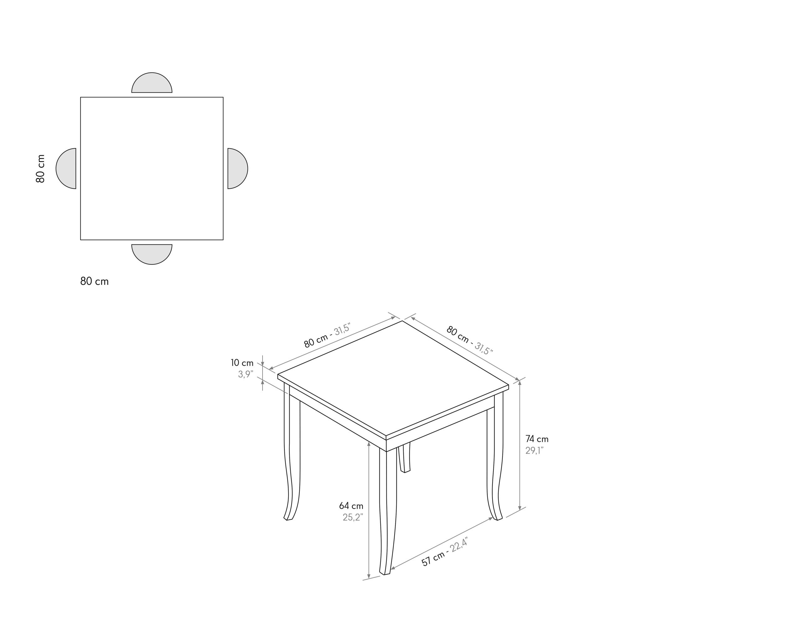 Dimensioni: 80x80x74 cm