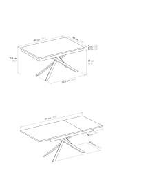 Tavolo moderno allungabile caratterizzato da un piano rettangolare originale è innovativo. Si distingue per la sua struttura solida composta da piedi in ferro incrociati raggiungendo una lunghezza in massima estensione grazie ad un meccanismo laterale di scorrimento su guide in metallo. Ideale per un soggiorno moderno che risalta tutti i dettagli assieme a uno stile esclusivo.