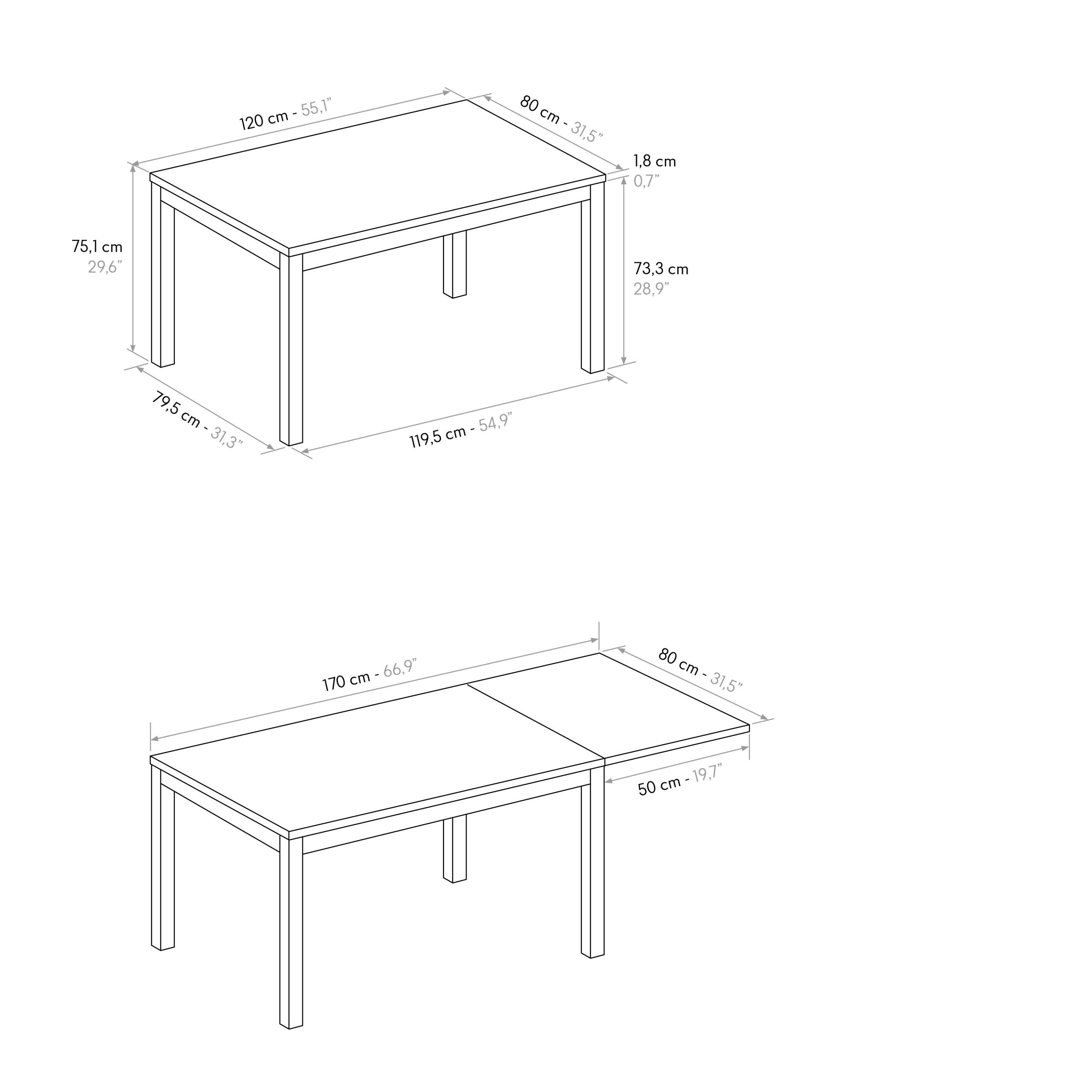 Dimensioni da aperto 1 allunga: 170x80x75 cm