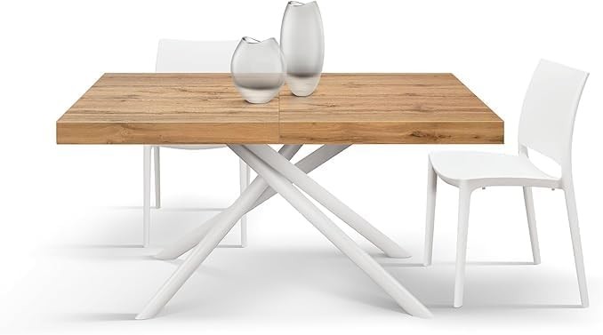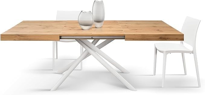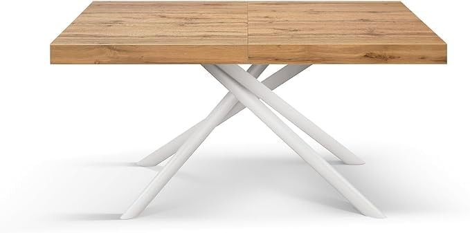 Tavolo moderno allungabile rovere rustico gambe tubolari bianche 140x90x74 160x90x74