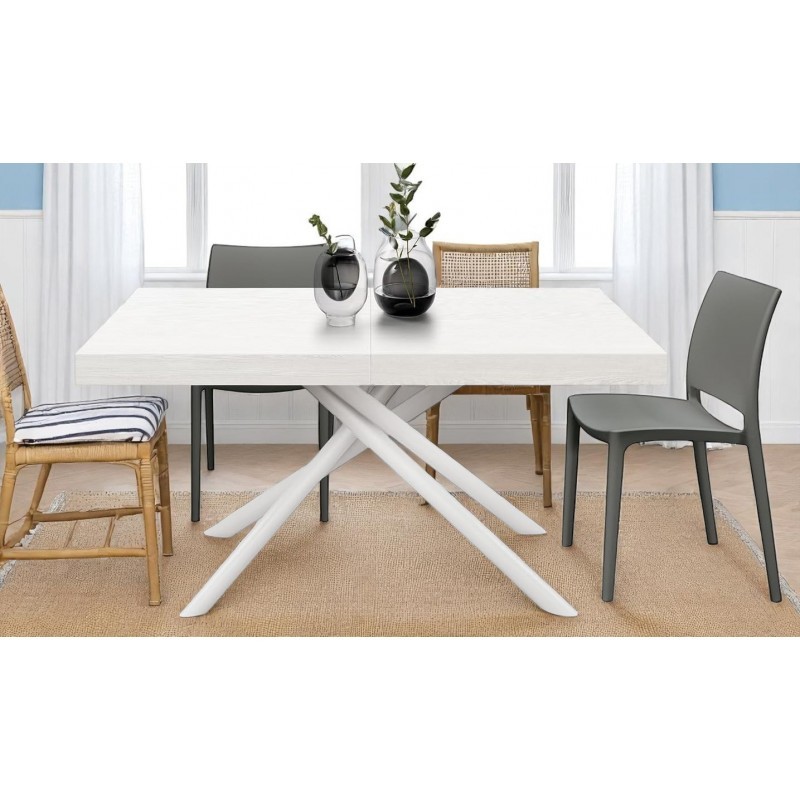 Tavolo moderno allungabile bianco frassino gambe tubolari bianche 140x90x74 160x90x74