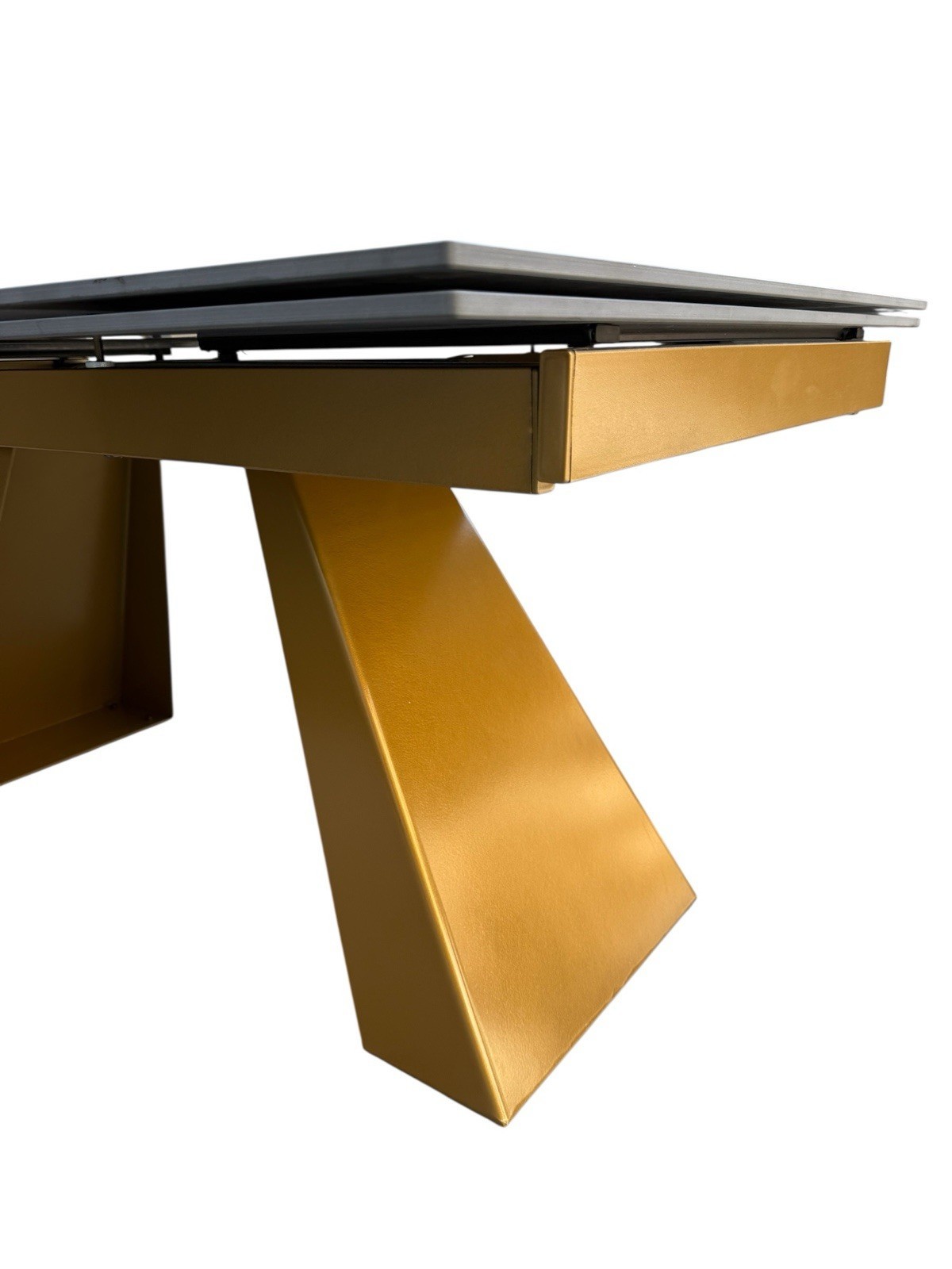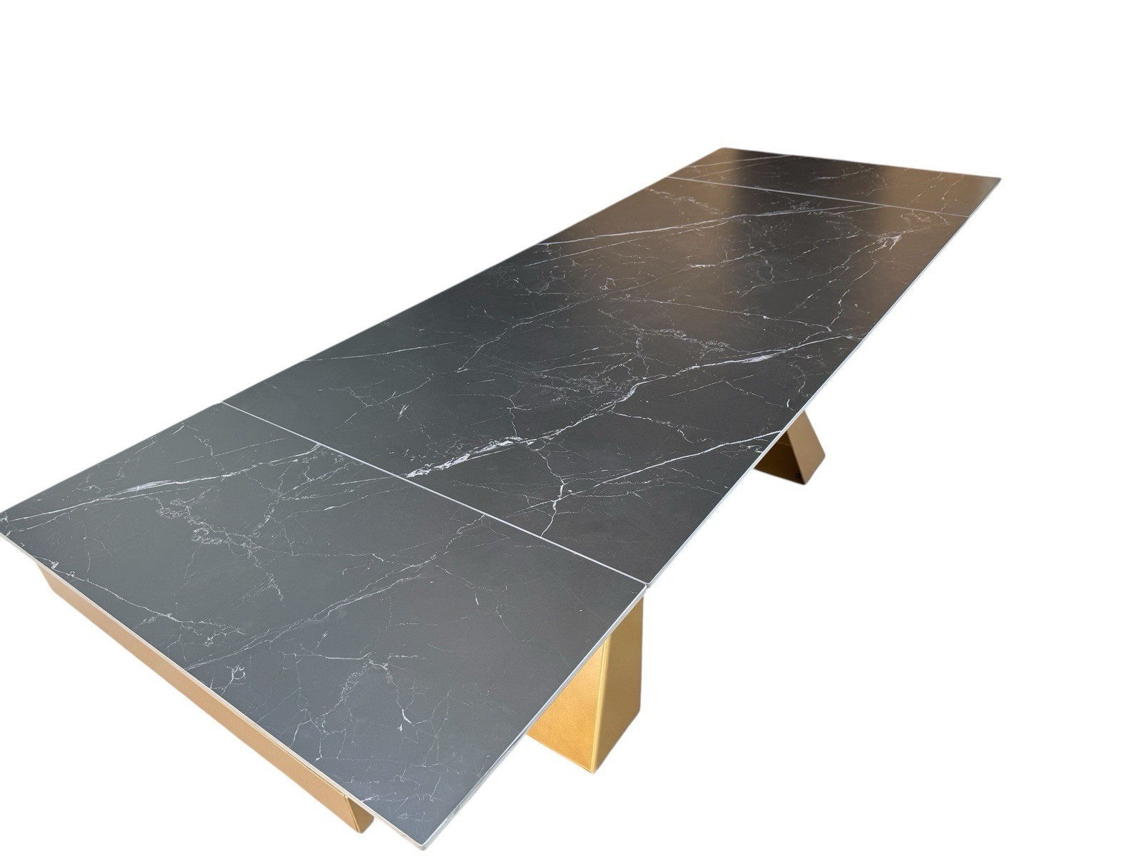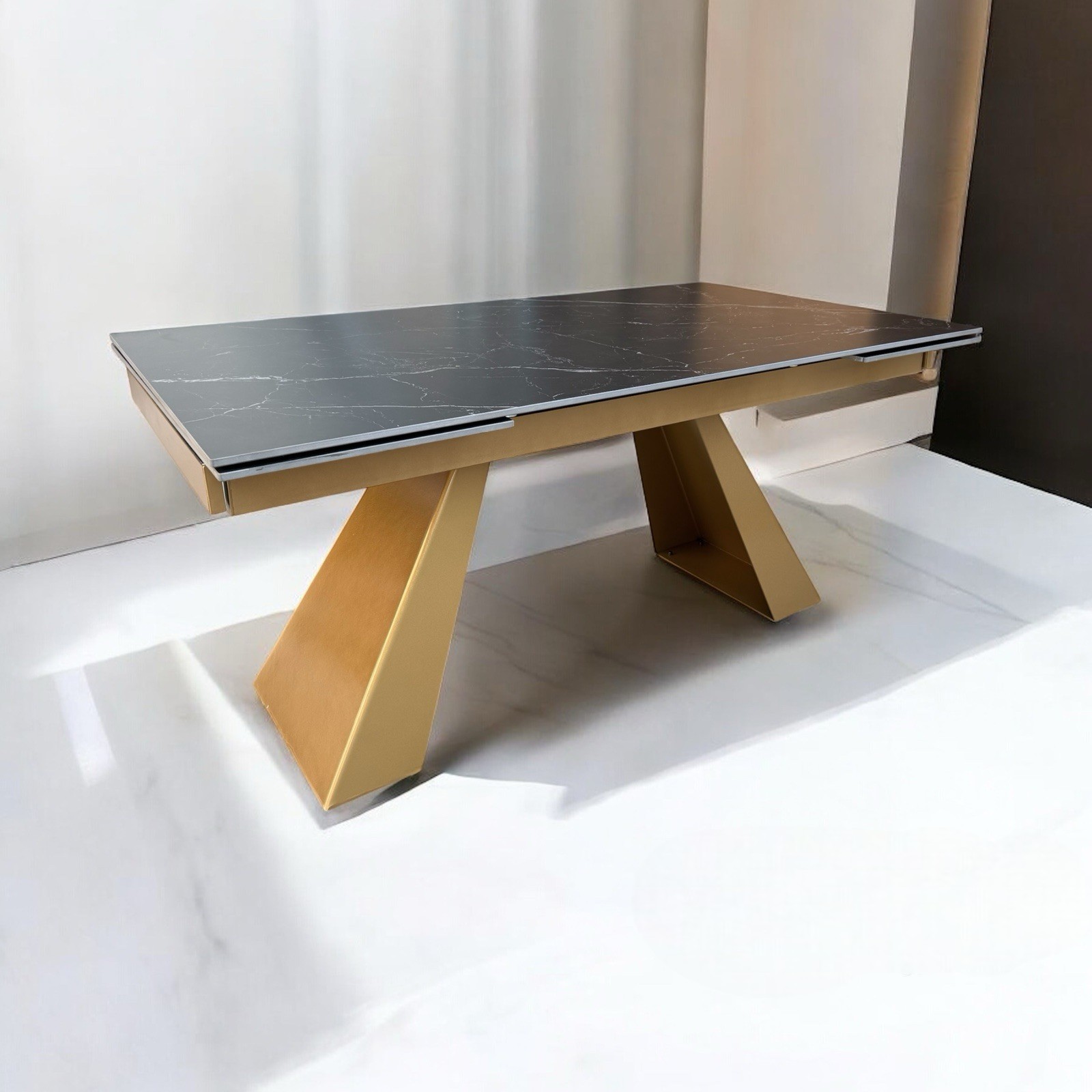Tavolo moderno allungabile piano nero effetto marmo gambe oro 160x90x78