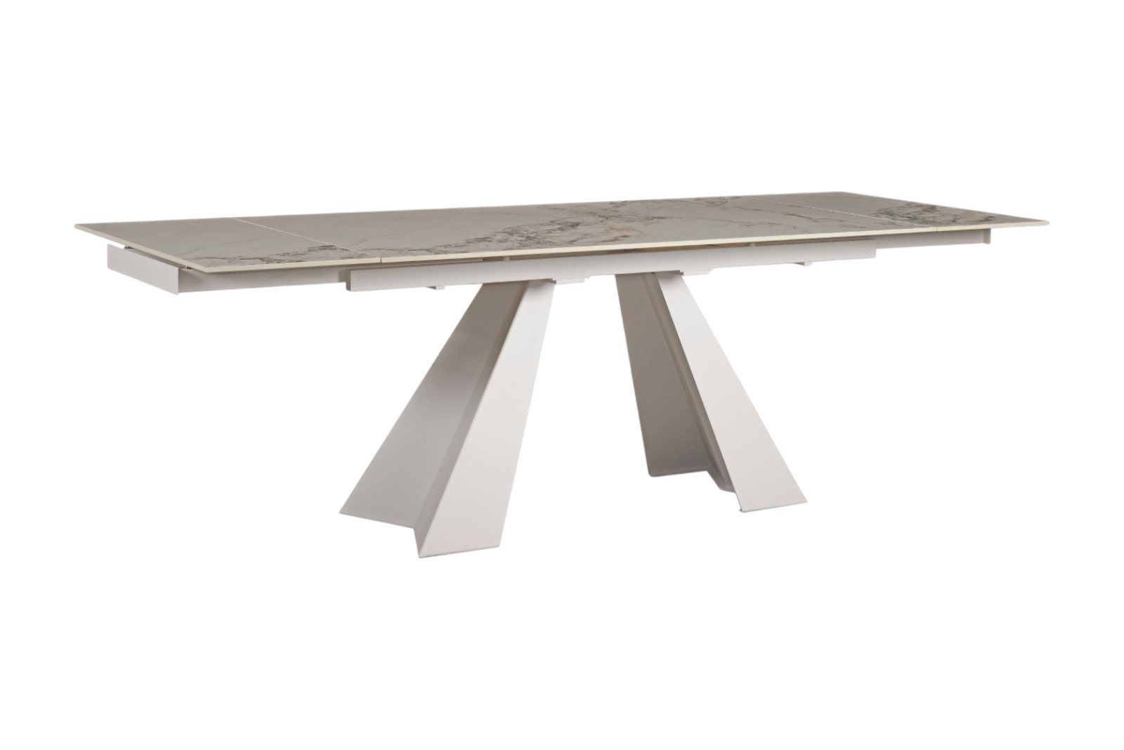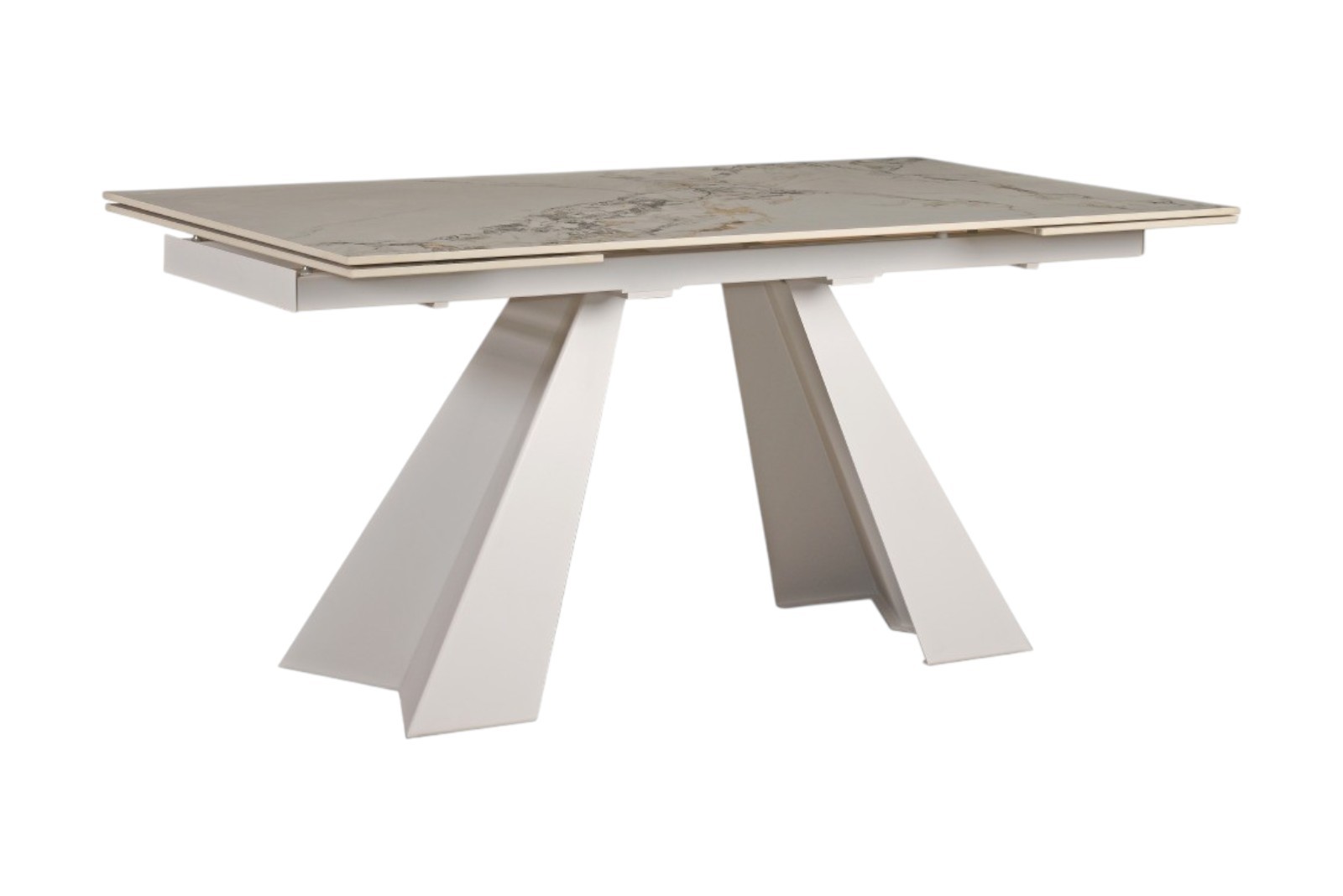 Tavolo moderno allungabile piano effetto marmo Gold gambe bianche 160x90x78