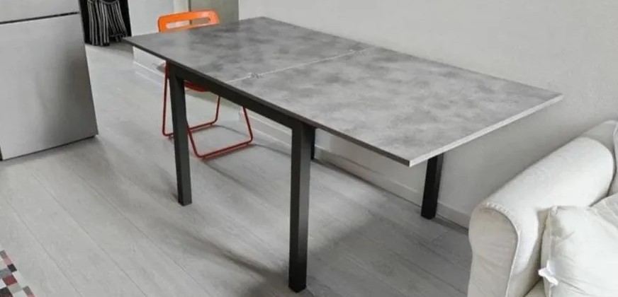TAVOLO MODERNO GRIGIO CEMENTO ALLUNGABILE LIBRO 90X90 (846)