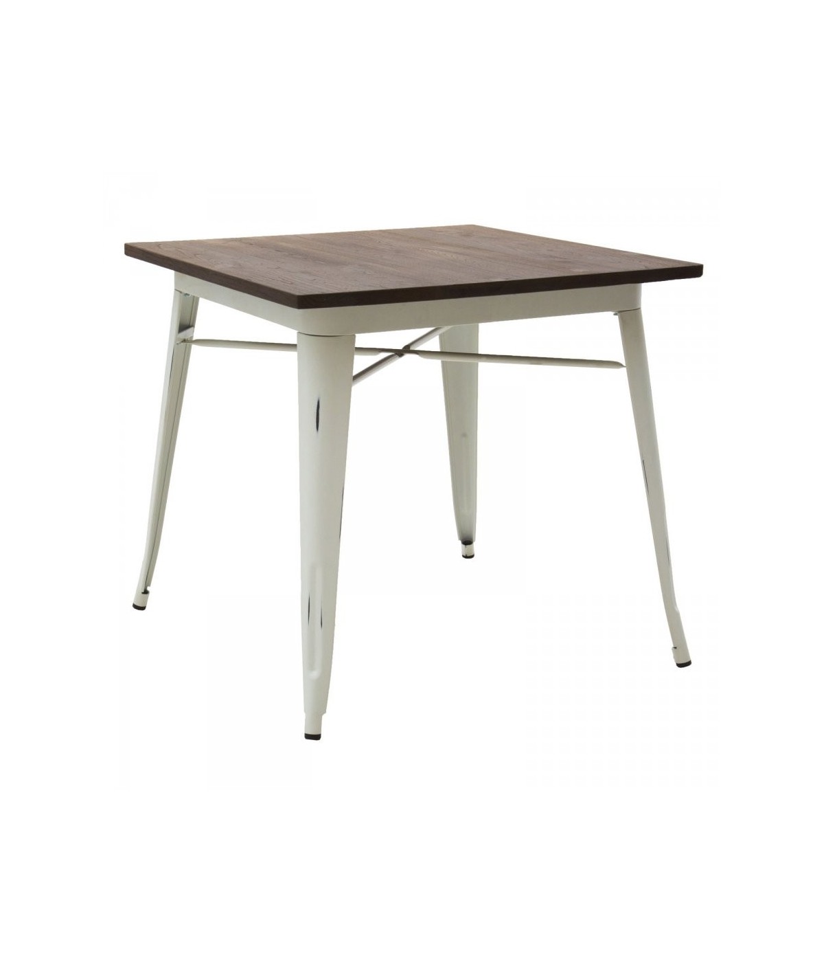 Tavolo quadrato in metallo bianco anticato piano in legno L.80 H.75 P.80