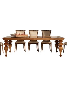 Tavolo costruito in legno massello di pioppo rendendo il mobile solido e allo stesso tempo elegante. Piano rettangolare con gambe sagomate sdoppiabili. Tavolo allungabile dotato di 4 allunghe da 45 cm con apertura centrale, le allunghe sono riposte sotto il piano. Ideale per il soggiorno o in taverna.