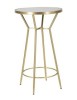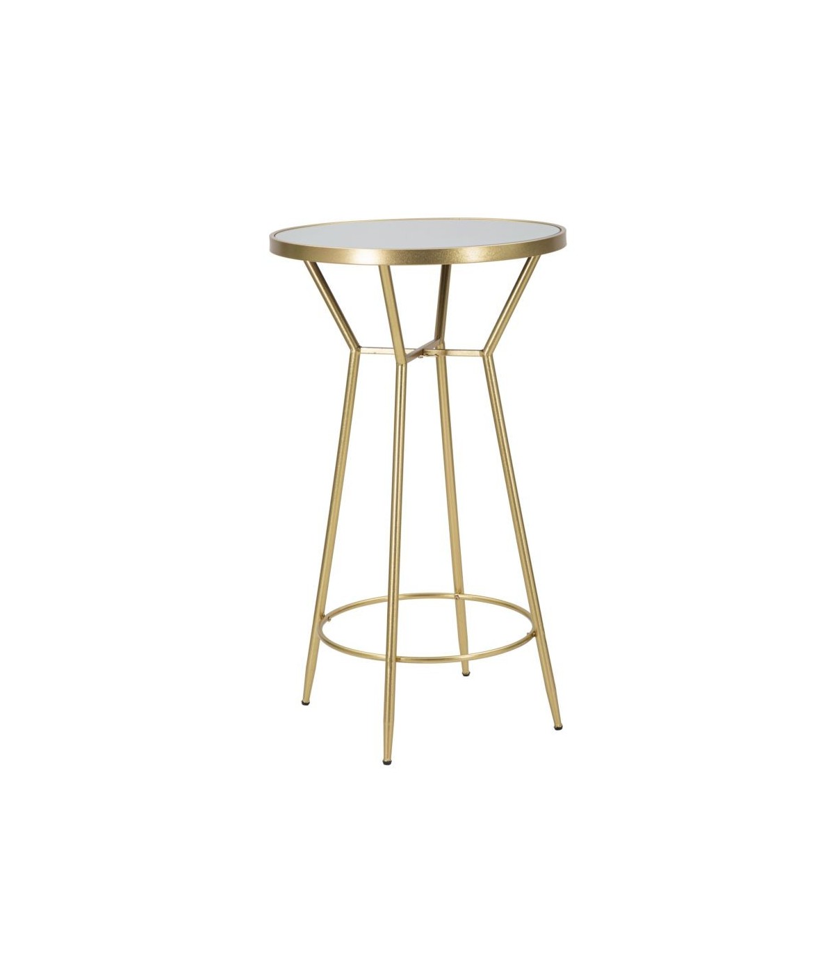 Semplice tavolo da bar rotondo in metallo dorato e piano in vetro a specchio. Design essenziale, lineare e pulito per donare con semplicità un tocco glam di classe all'angolo bar della tua casa.