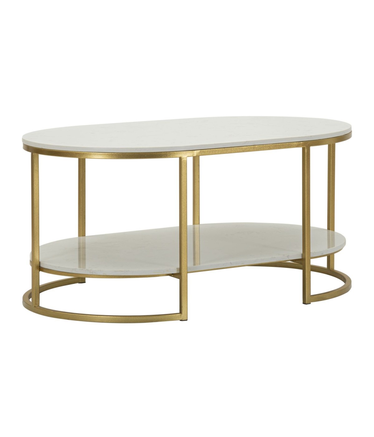 Tavolo da caffè Izmir, design elegante con doppio piano effetto marmo e struttura dorata. Perfetto per ambienti raffinati e moderni.